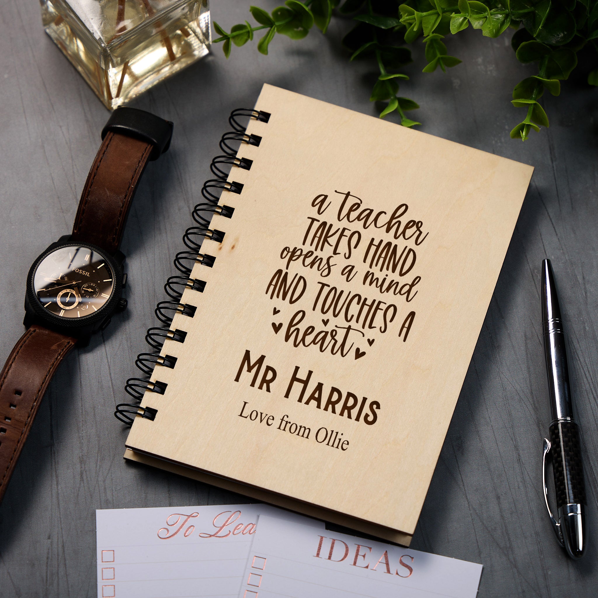 Personalised Wooden Teacher Gift Notebook Touches A Heart