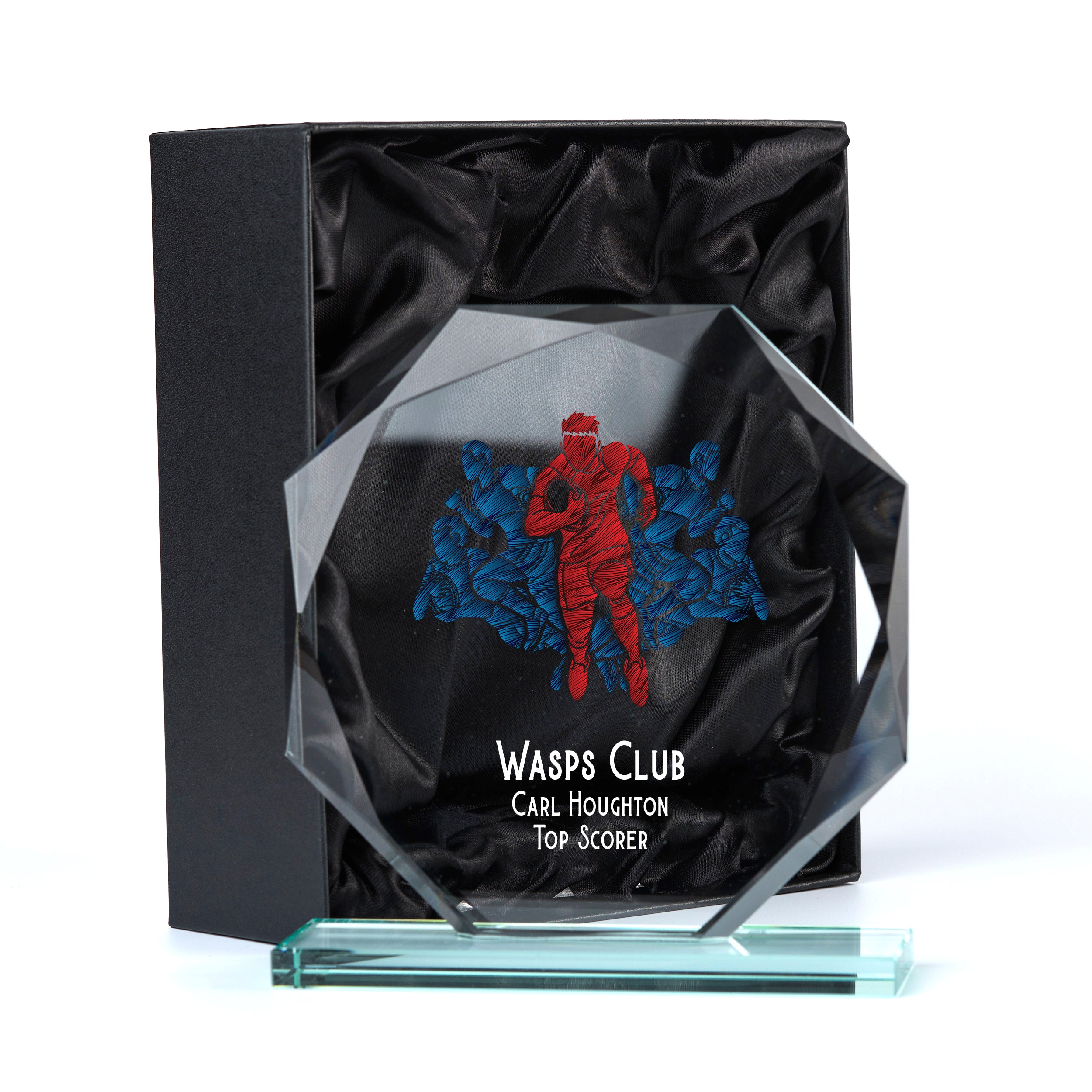 Crafted from high-quality jade glass, this 15cm Rugby trophy is the ideal way to commemorate any special event. Arriving in a luxurious silk-lined gift box, this personalised award is an impressive and thoughtful present. Colour UV Printed ensures that the recipient's achievements will be forever immortalized on this distinguished trophy.