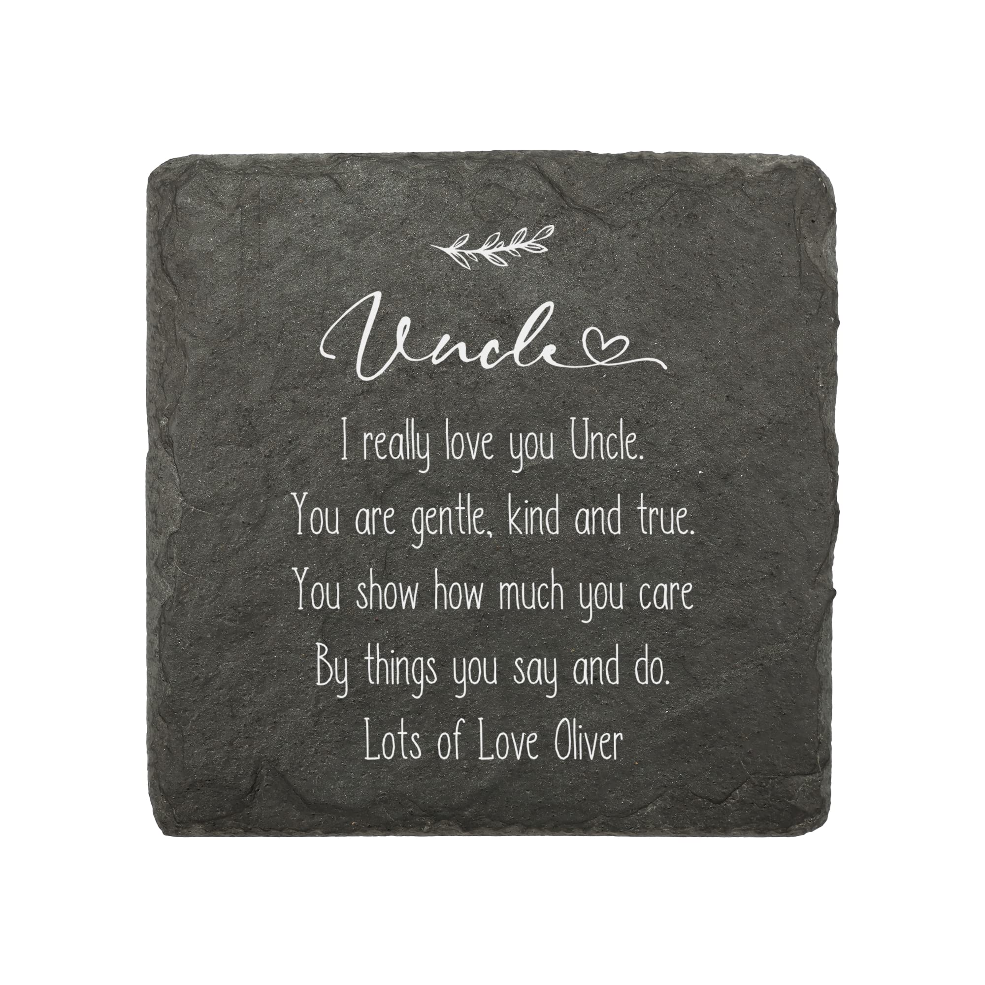 Personalised Uncle Slate Stone Coaster - A thoughtful gift for someone special. The slate measures 10cm and...