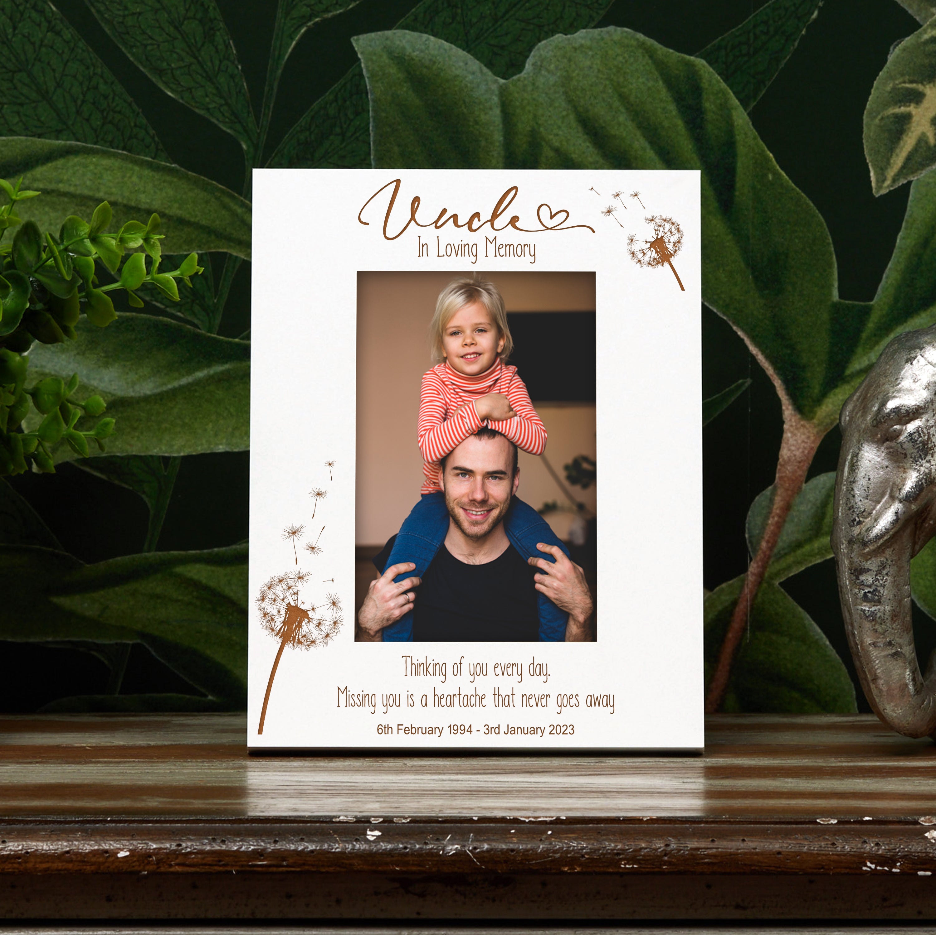 Capture and cherish your precious memories with Uncle Remembrance Photo Frame Featuring a beautiful portrait with dandelions!...