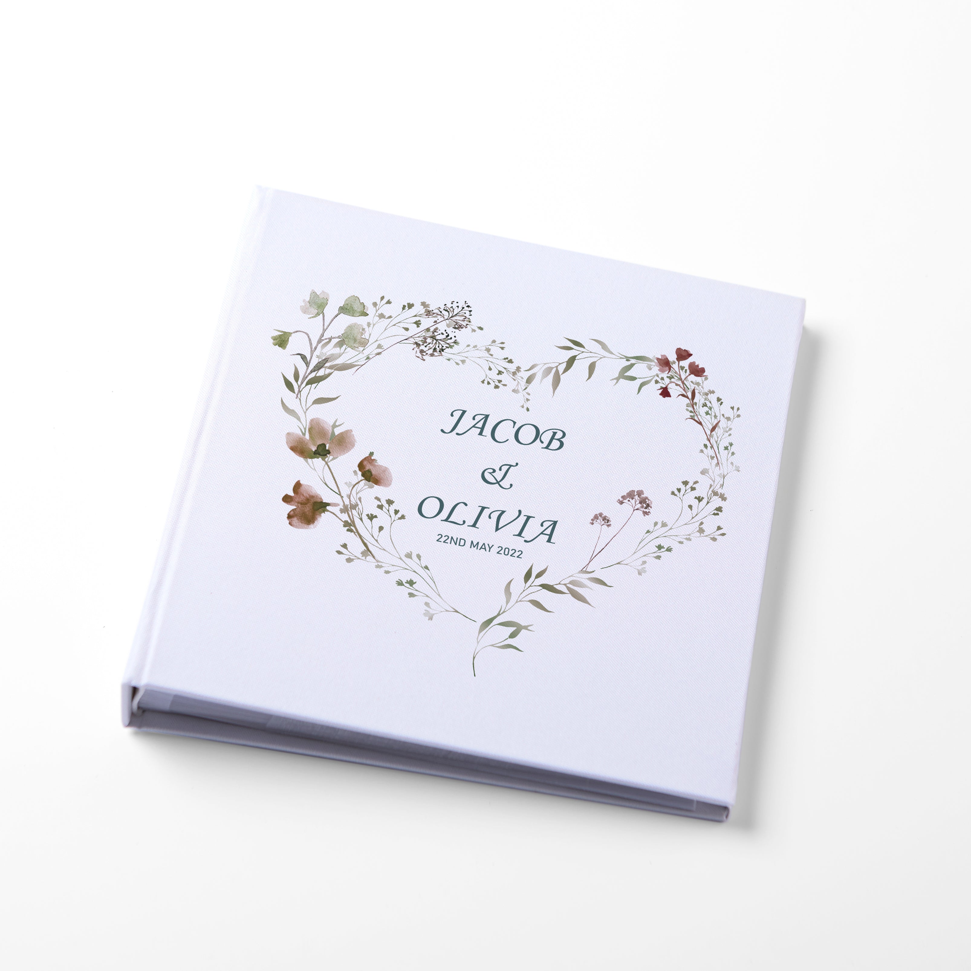 Large Traditional Book Bound Personalised Wedding Photo Album With Watercolour Floral Heart