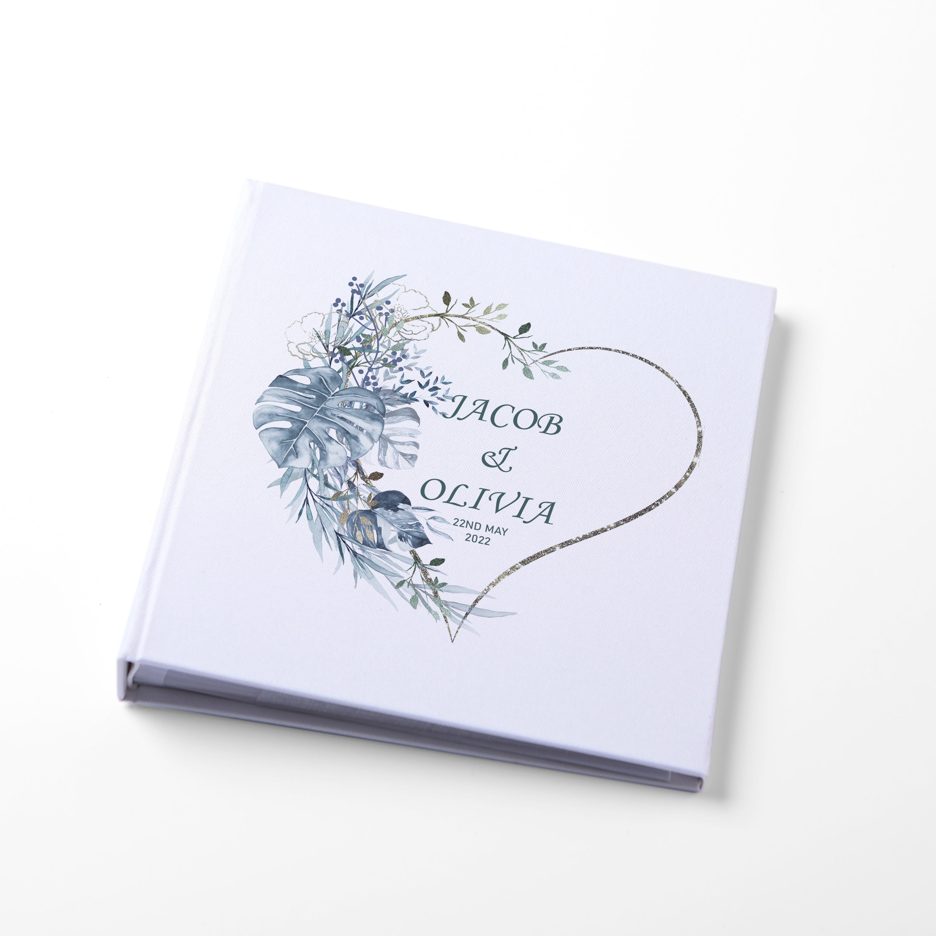 Linen cover with slide in sleeves and space next to each photo to record memories.