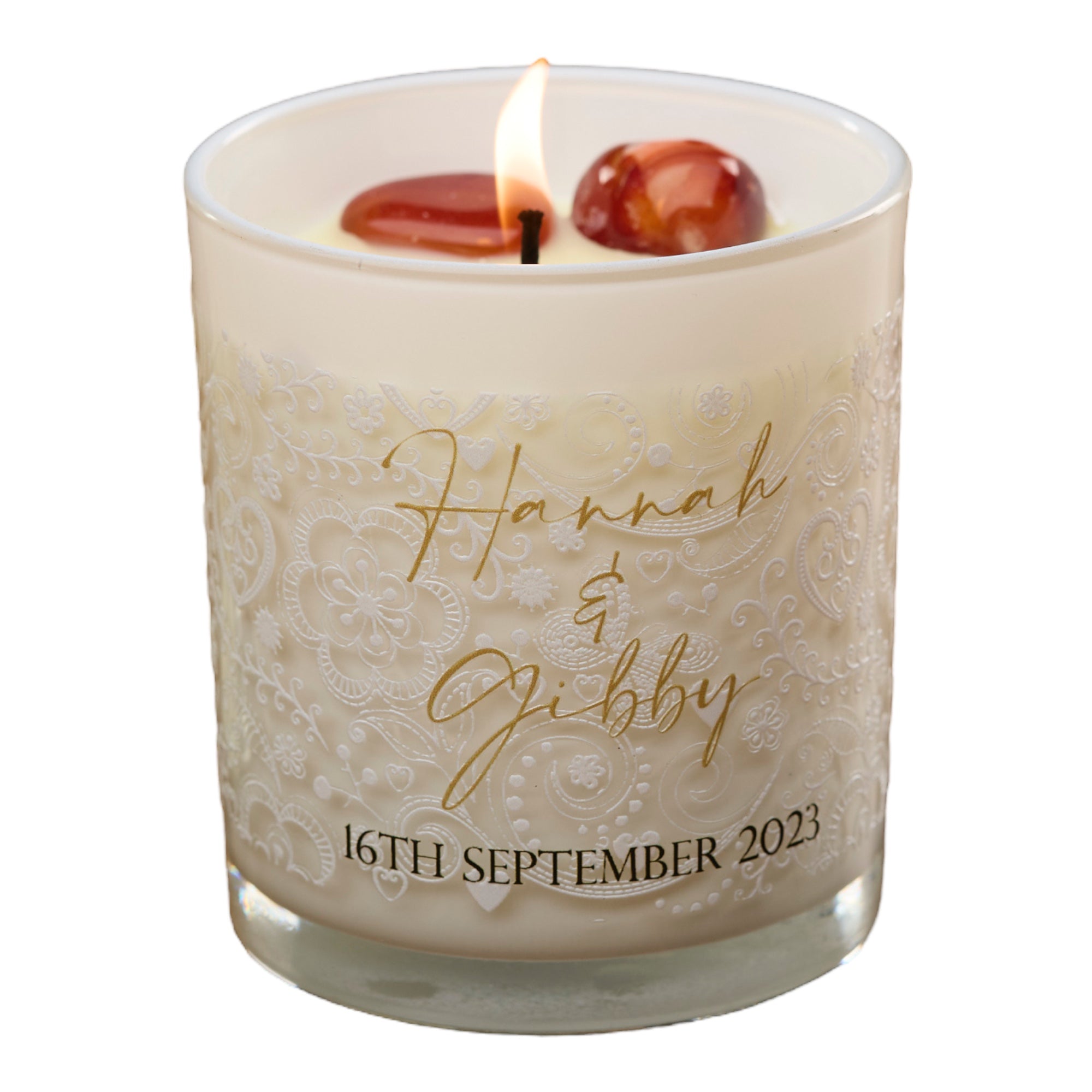 This customised wedding candle gift comes with a beautiful heart background, making it the perfect addition to...