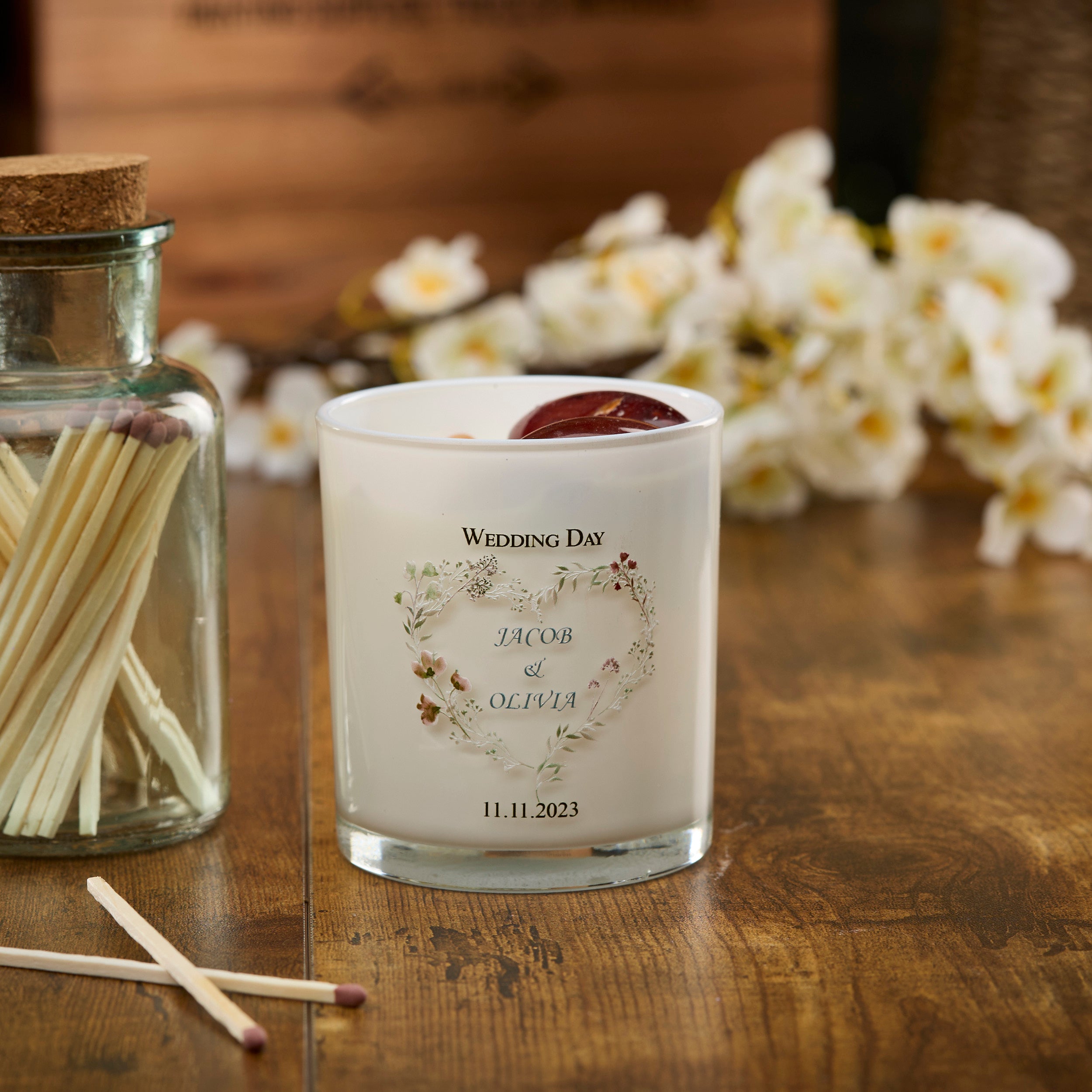 Personalised Wedding Day Candle Gift With Watercolour Floral Heart