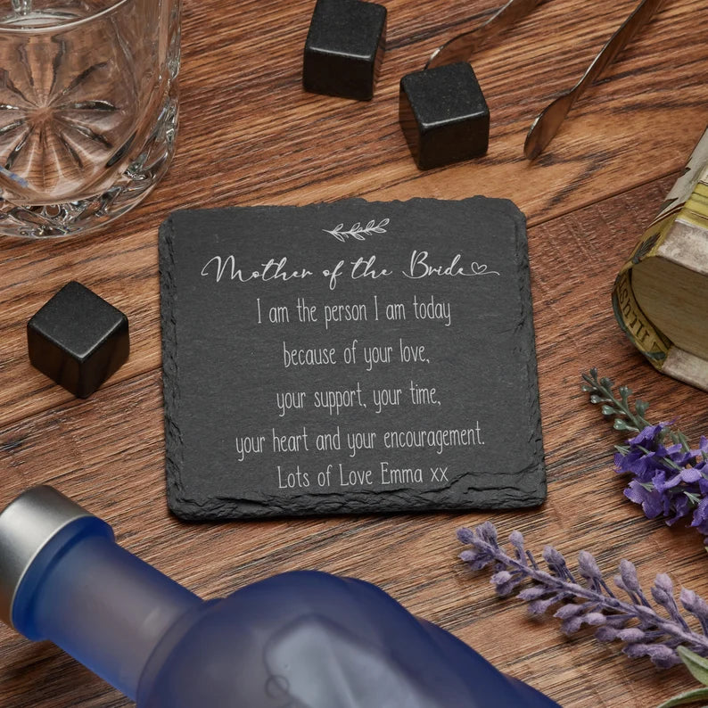 The slate measures 10cm and comes foam pads underneath to protect the furniture. As we only use the 100% natural raw slate and hand-cut it to shape, irregularities on the surface /sharp edges & corners and tiny chips off within the finished designs are to be expected.