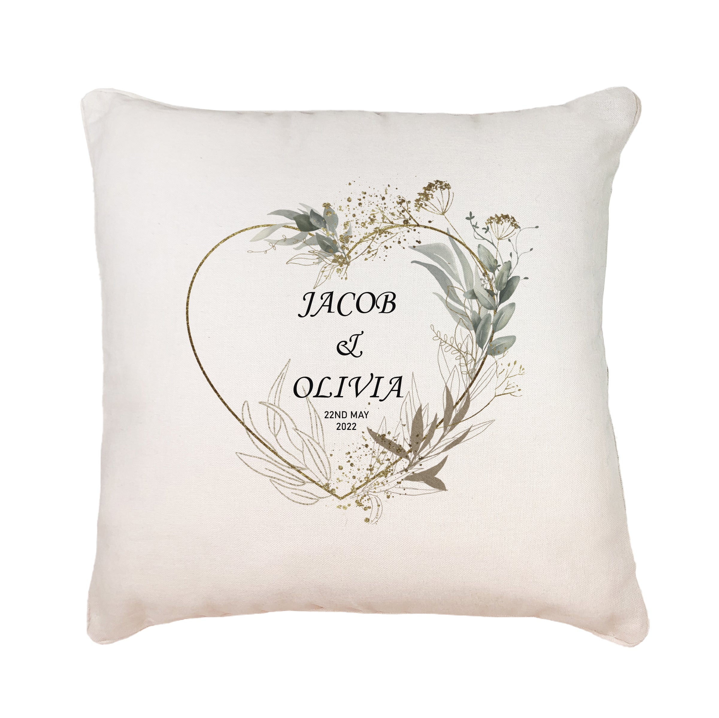Personalised Wedding Day Cushion Pillow Gift With Silver Green Heart