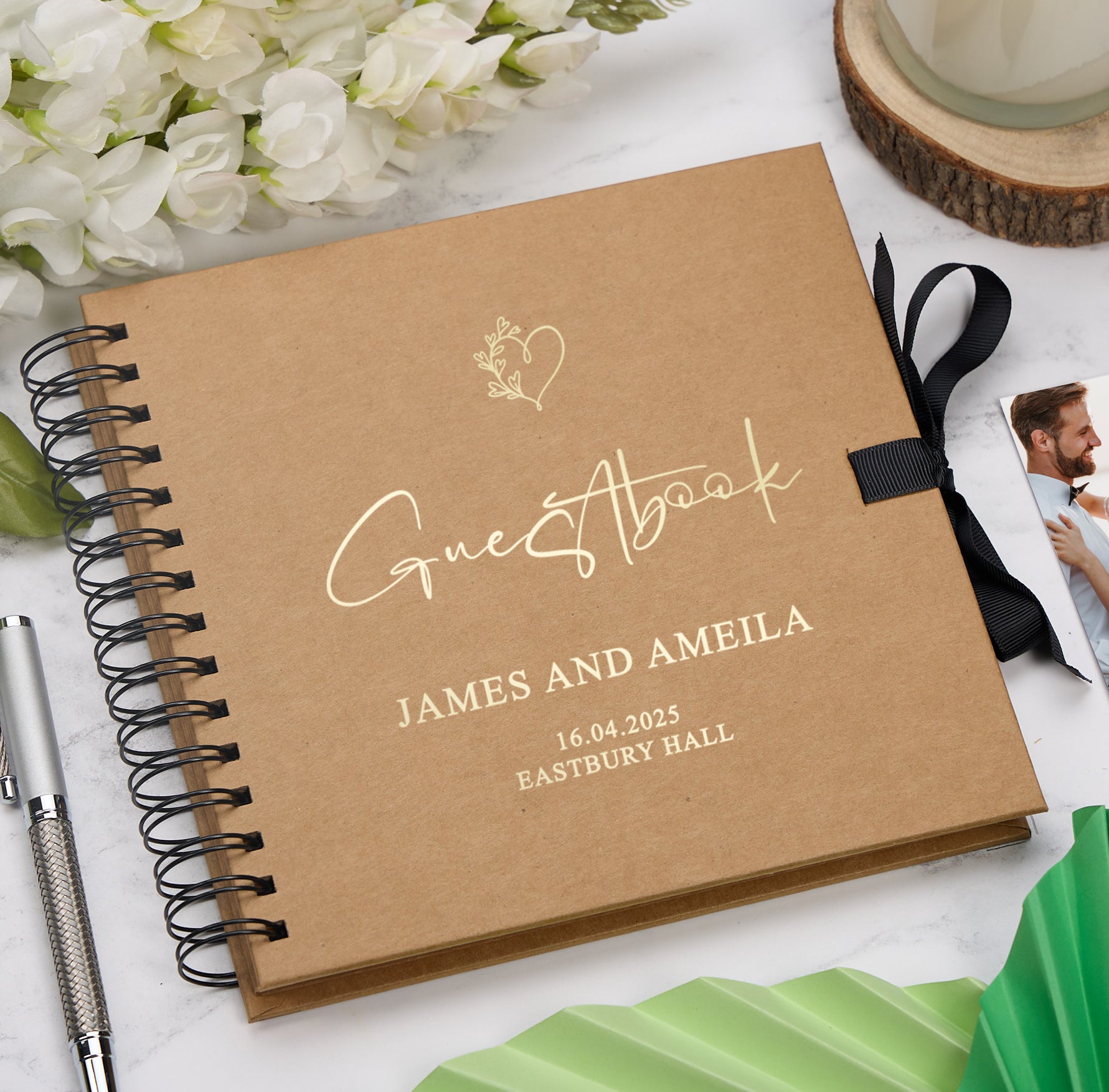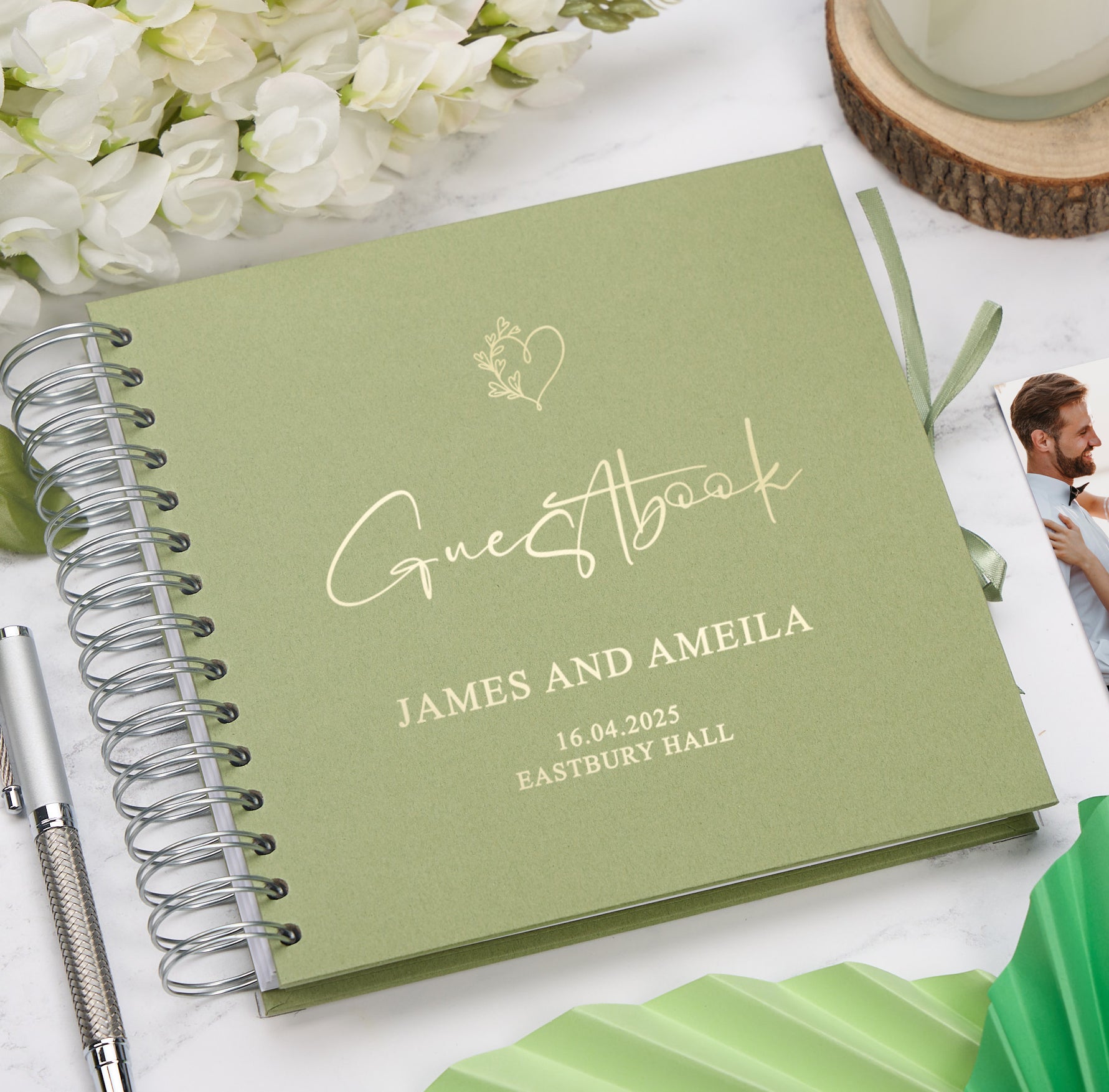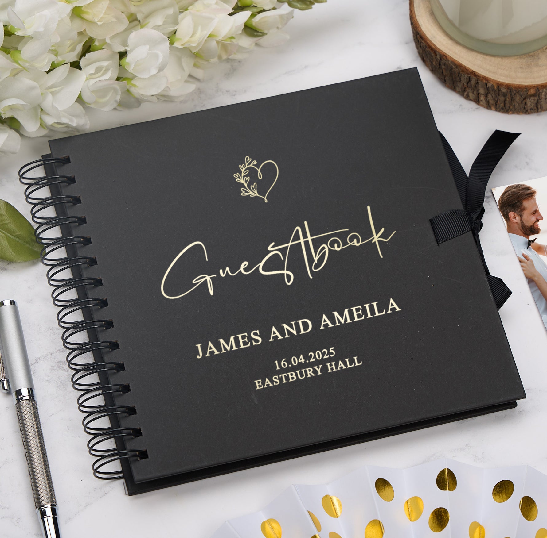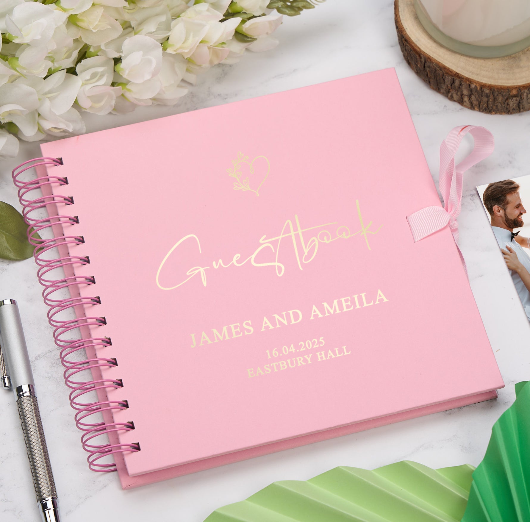 Personalised Custom Foil Wedding Guestbook With Delicate Heart and Multiple Colours