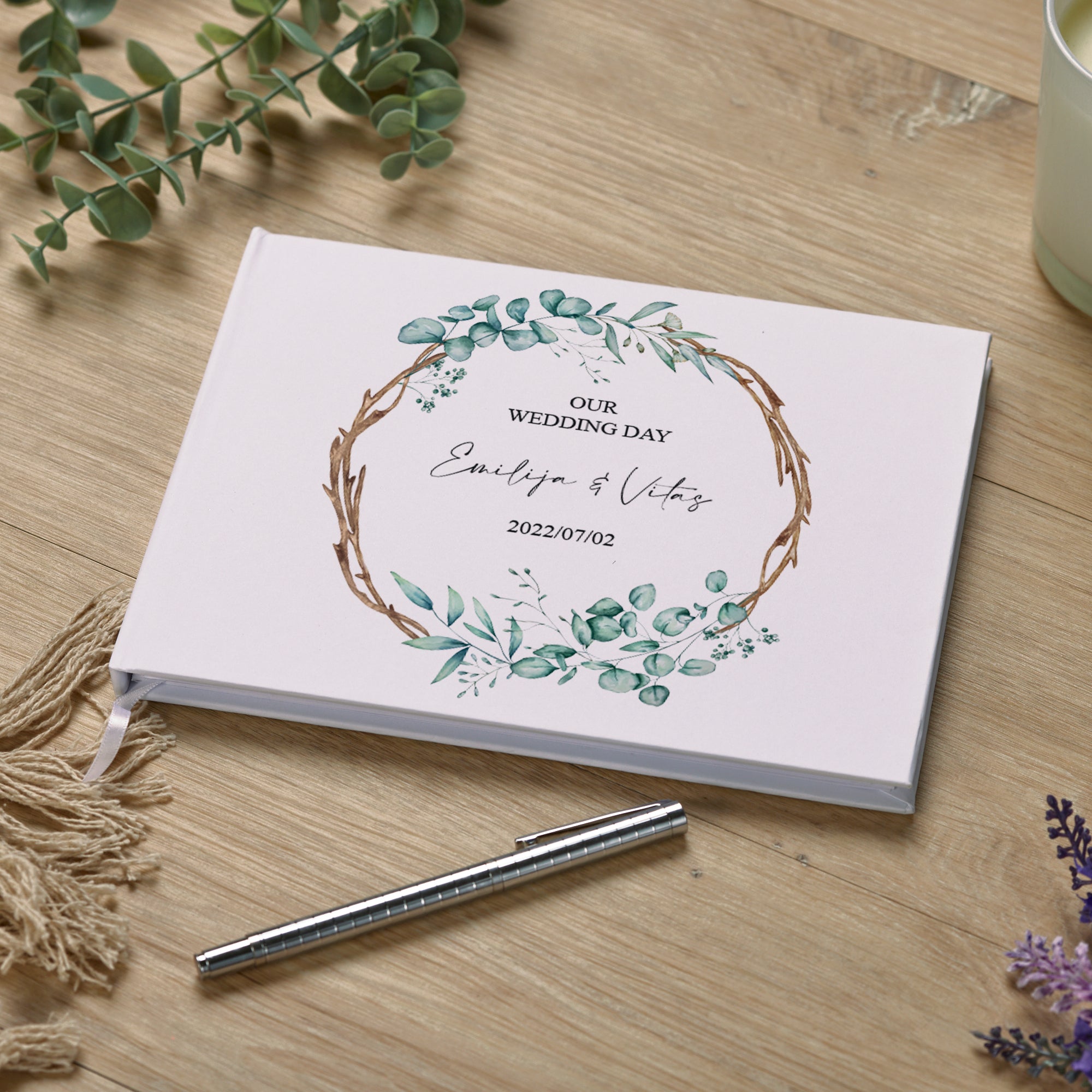 Personalised Wedding Guest Book With Green Leaves and Twigs Design