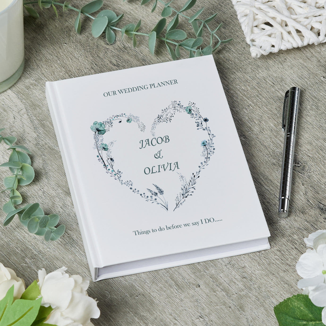 This personalised wedding planner book features beautiful Dusty Blue Heart and makes for a perfect engagement gift....