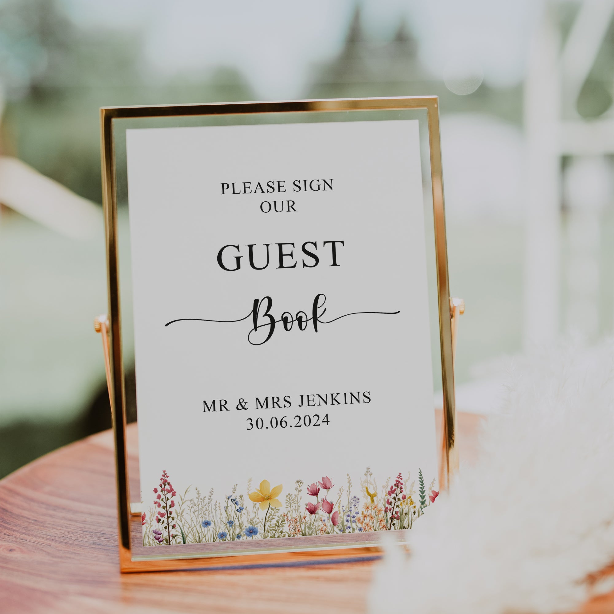 Get your wedding started with a customised Table Guest Book Wedding sign featuring your personalised couple names...