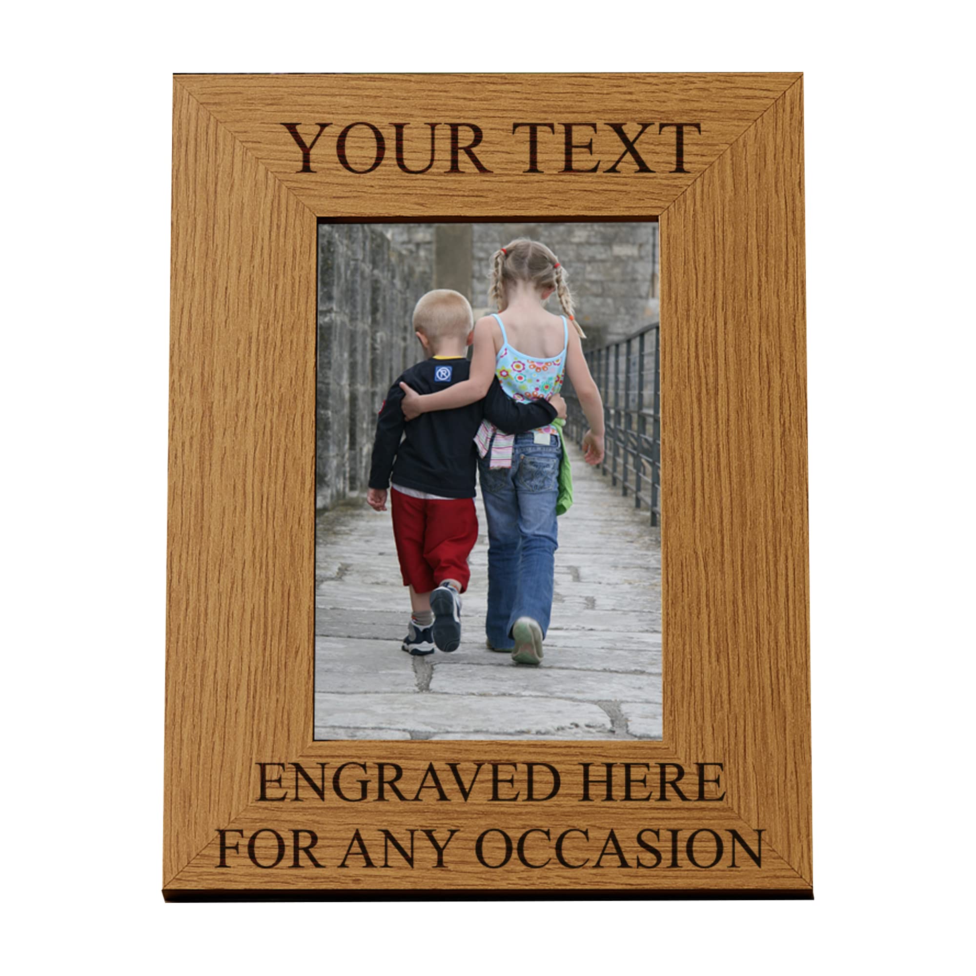Personalised Wooden Photo Frame Laser Engraved Any Date Any Name Any Text 5 x 7 Inch Portrait or Landscape