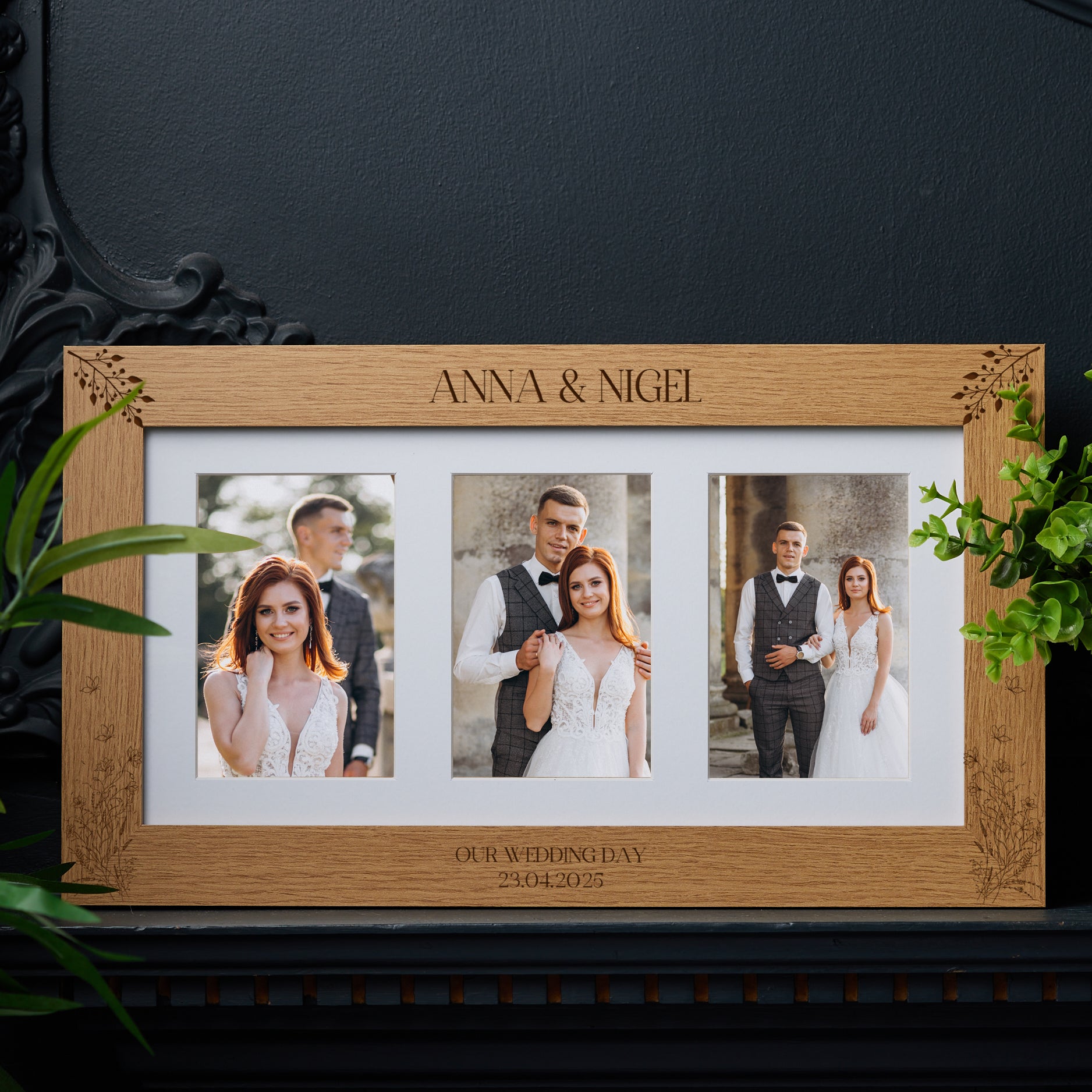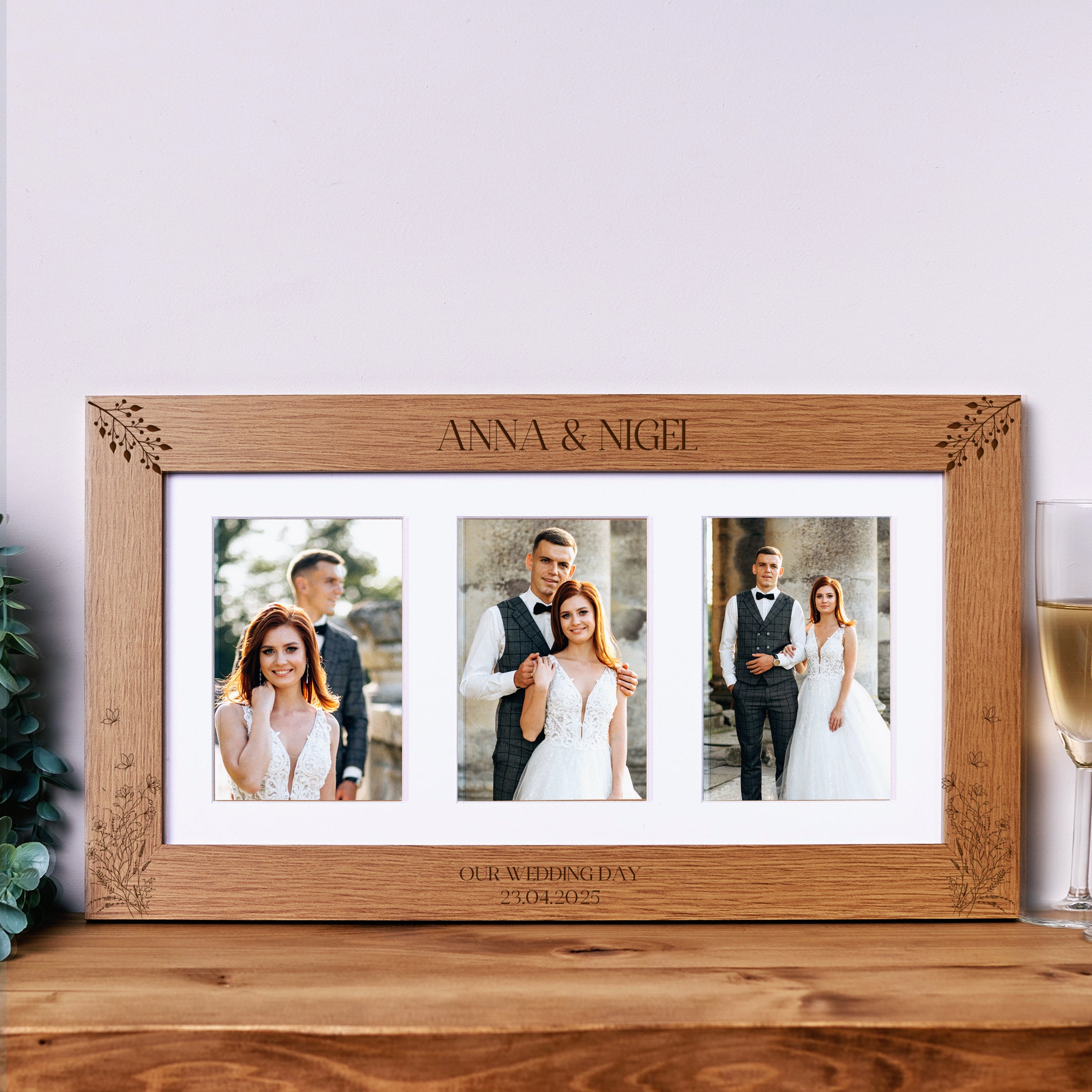 It's designed to showcase up to three of your most treasured memories, making it an ideal keepsake for any significant moment. You'll appreciate its versatility, as it's equipped with a hook for effortless hanging and allows for rear photo insertion.