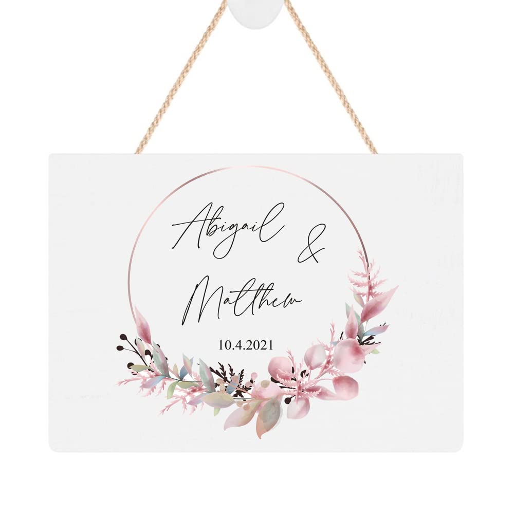 Lovingly and expertly crafted from mdf, the adorable sign makes for an awesome addition to a home and comes complete with its own hanging rope. The sign itself is fabulously finished in elegant white, which is just perfect for showing off its sensational printed decoration. An elegant eucalyptus wreath is always featured as part of that delightful decoration and can be complemented by the names and date. Personalised landscape style wooden sign Printed with your unique personalisation Perfect for any home Comes ready for hanging Please note that rope style or colour may vary Measures approx. W:20cm x H:15cm x D:0.5cm