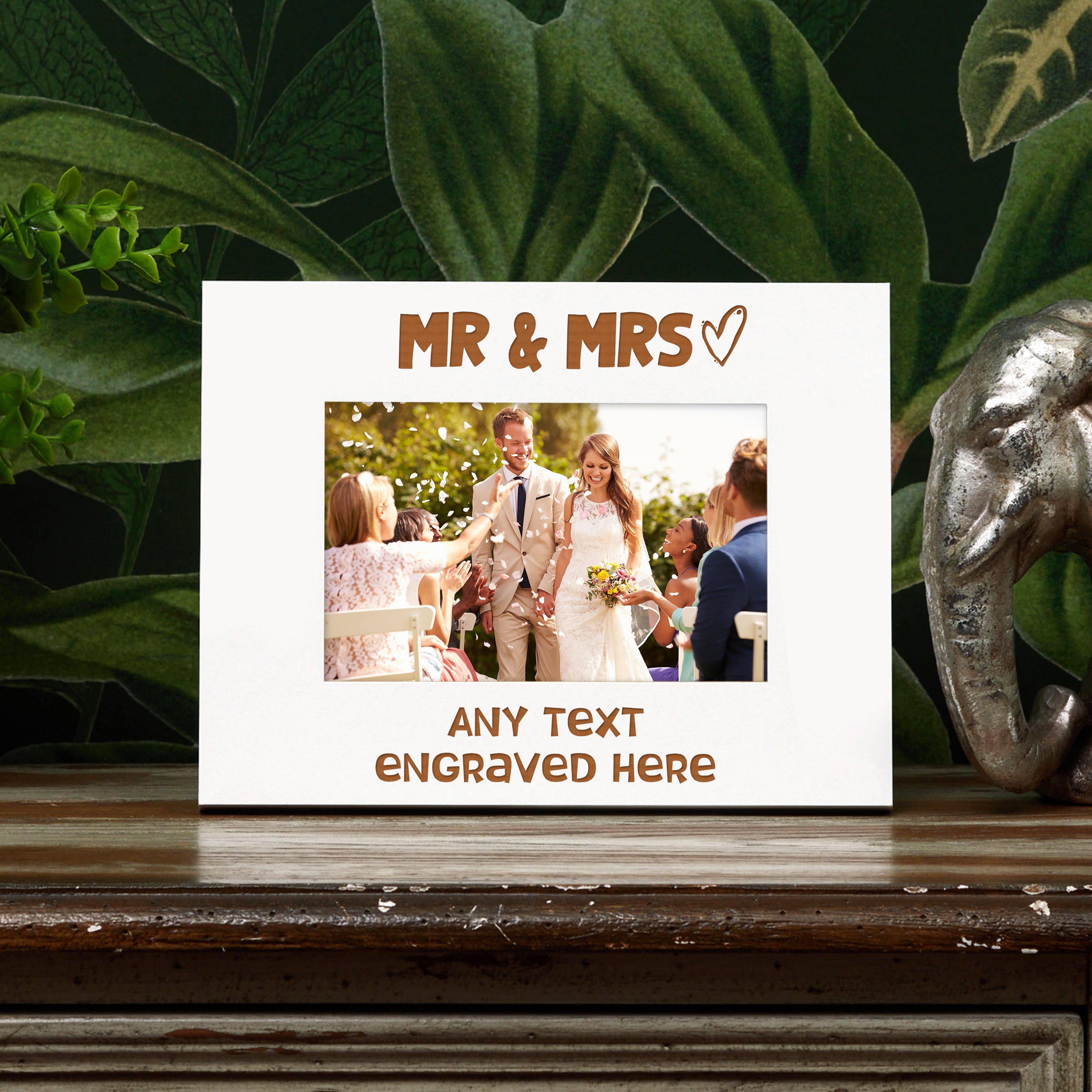 Carefully crafted and expertly engraved with a design that perfectly captures the excitement of being married. You can proudly display a treasured photo in this frame, making it the perfect gift for you or your loved ones.