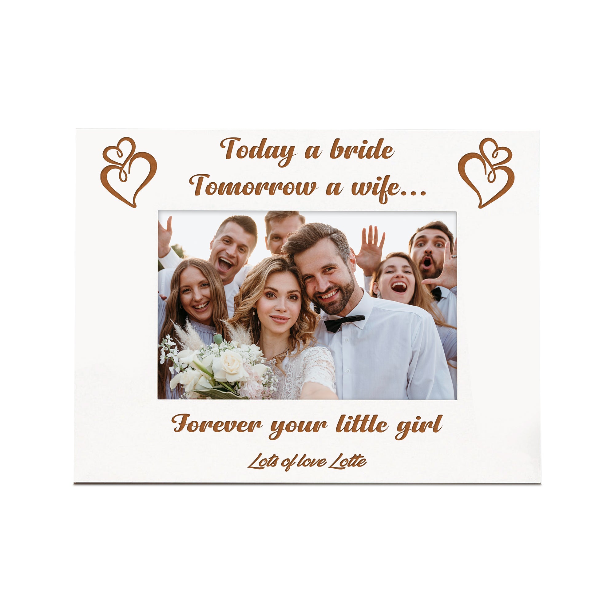Capture the moment and create a lasting memory with our personalised White Engraved Daughter to Parents Wedding Picture Photo Frame Gift. Made with attention to detail, this frame serves as a timeless reminder of your special day.