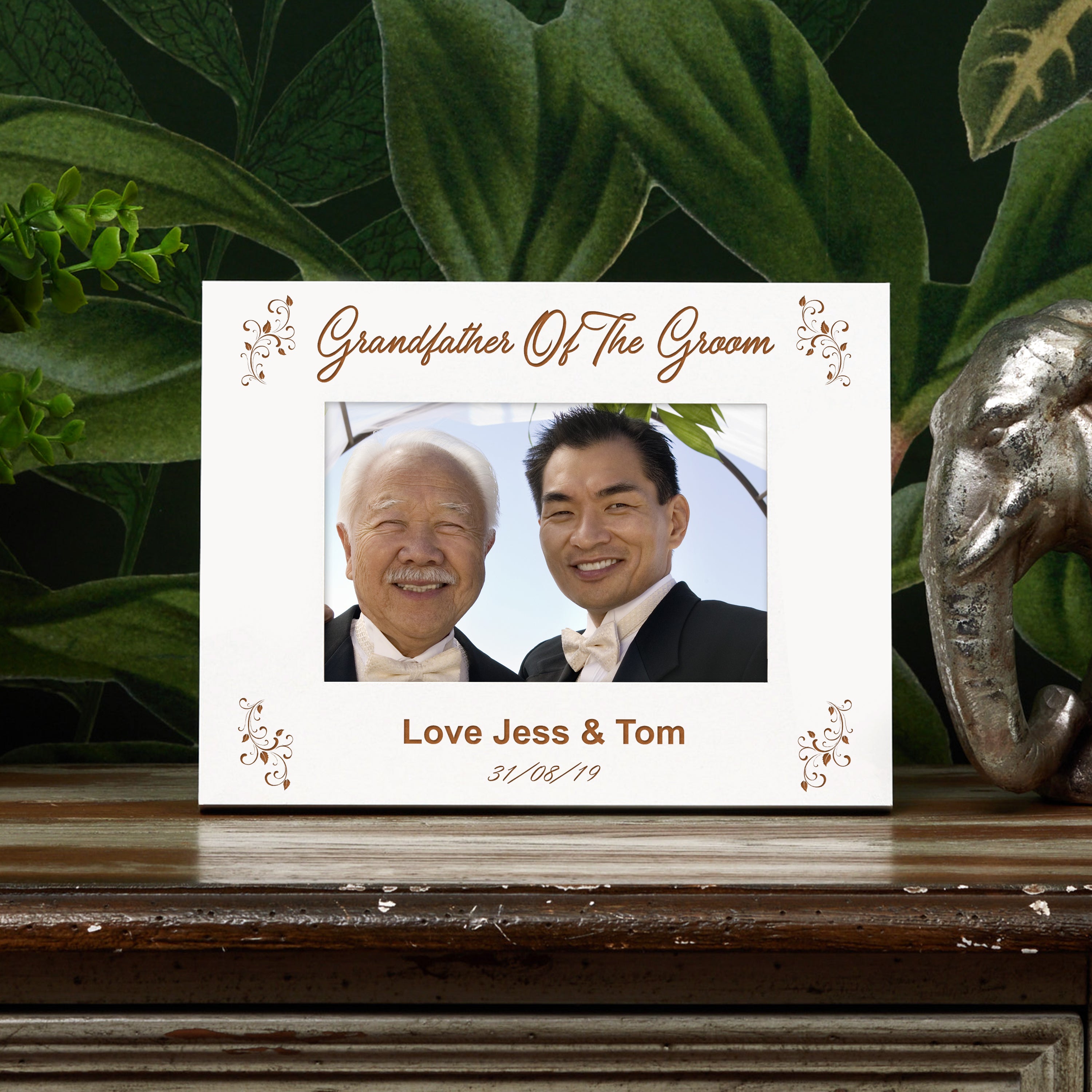 White Engraved Personalised Grandfather Of The Groom Photo Frame Gift