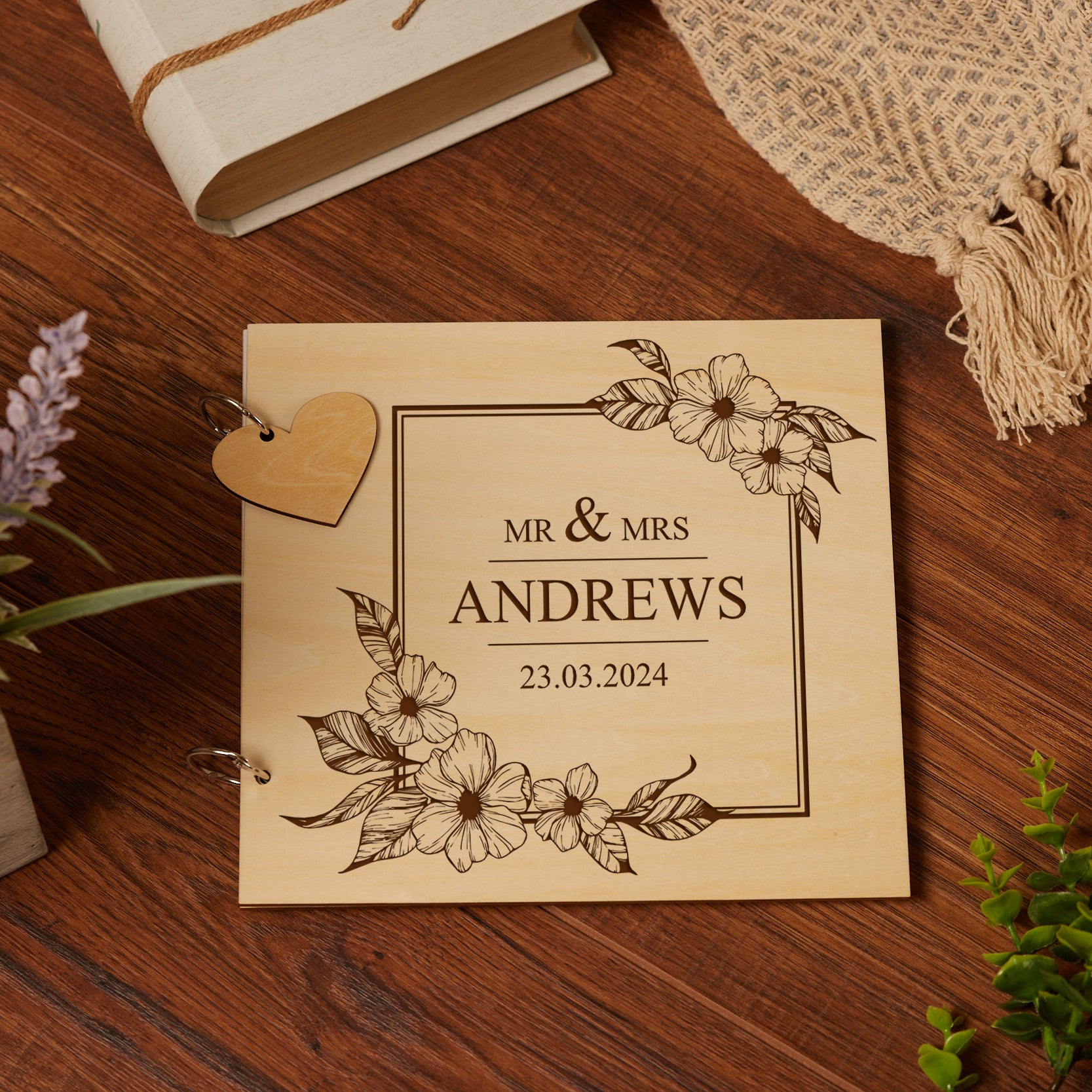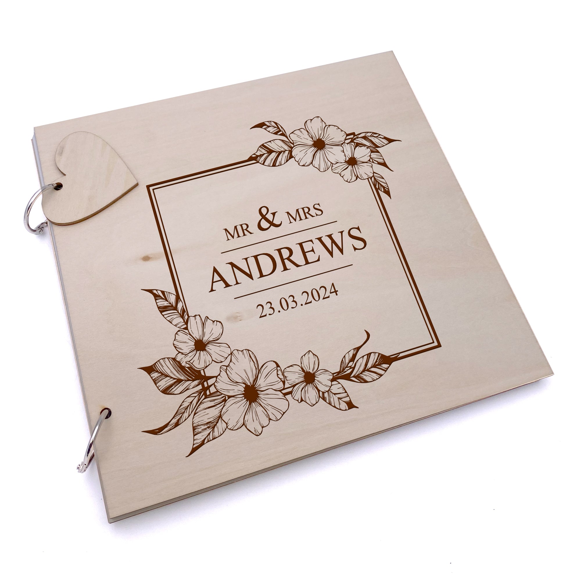 Personalised Engraved Wedding Guest Book or Scrapbook Floral Design