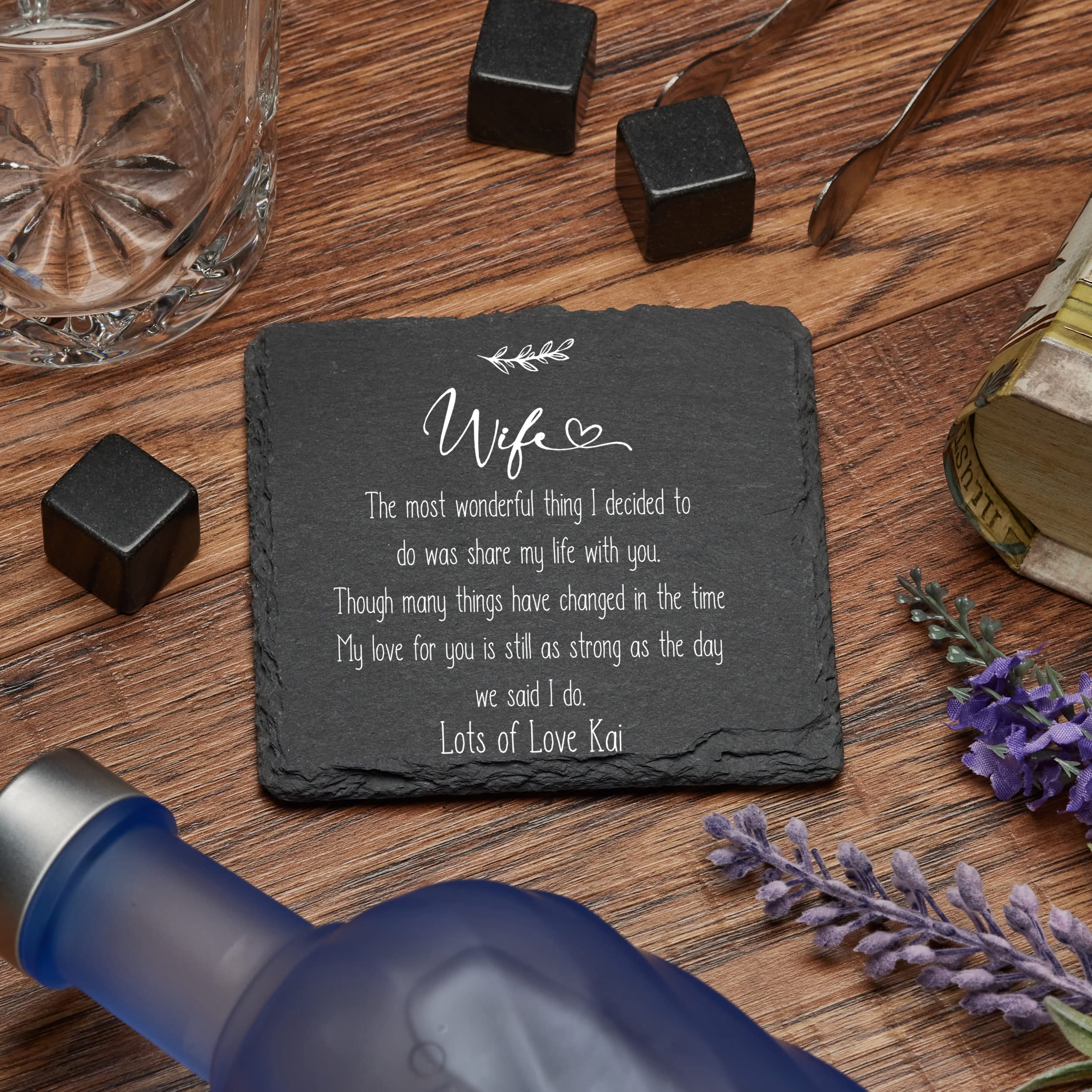 Personalised Wife Sentiment Gift Slate Stone Drink Coaster Gift
