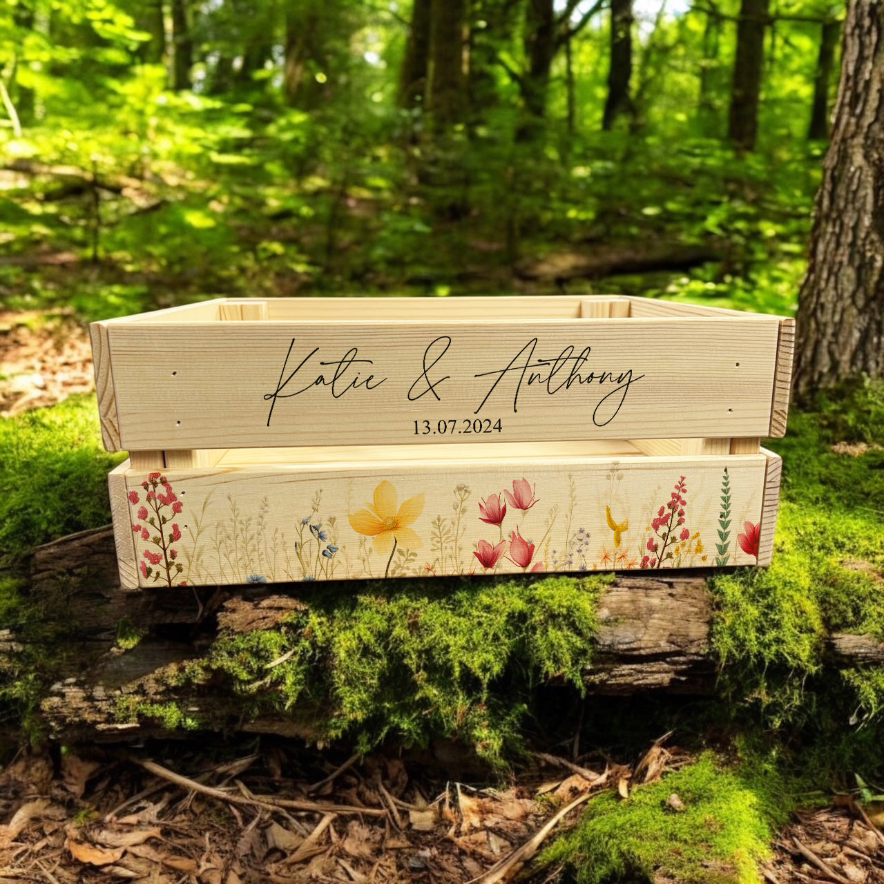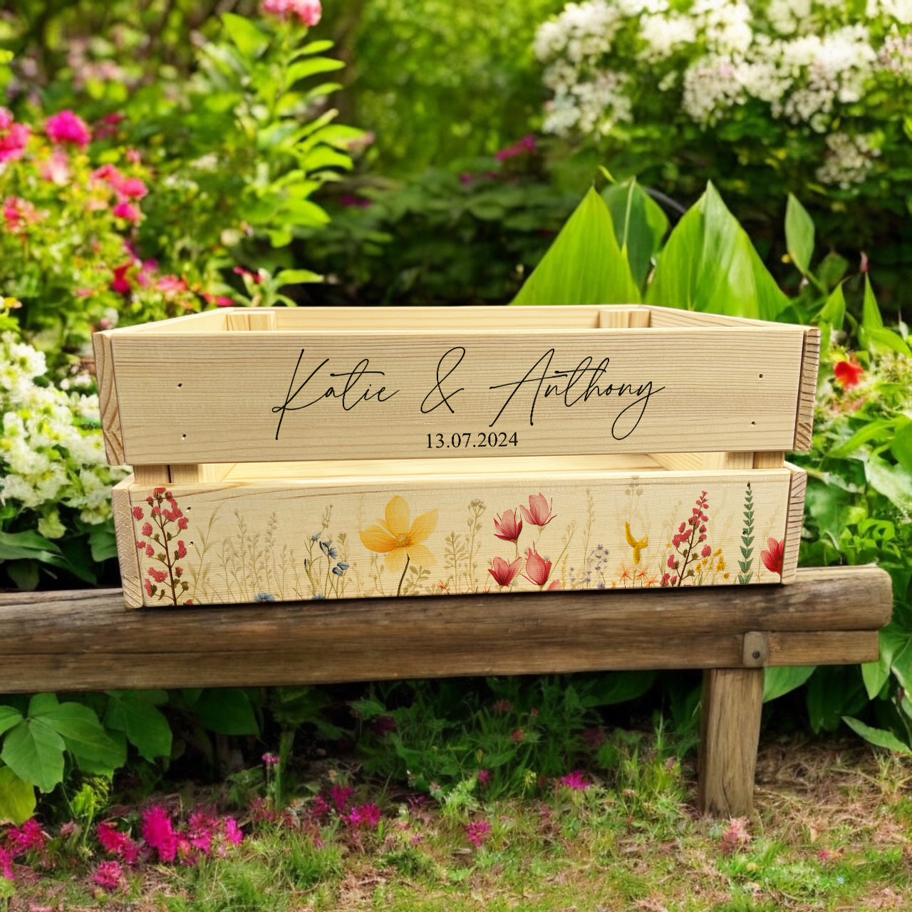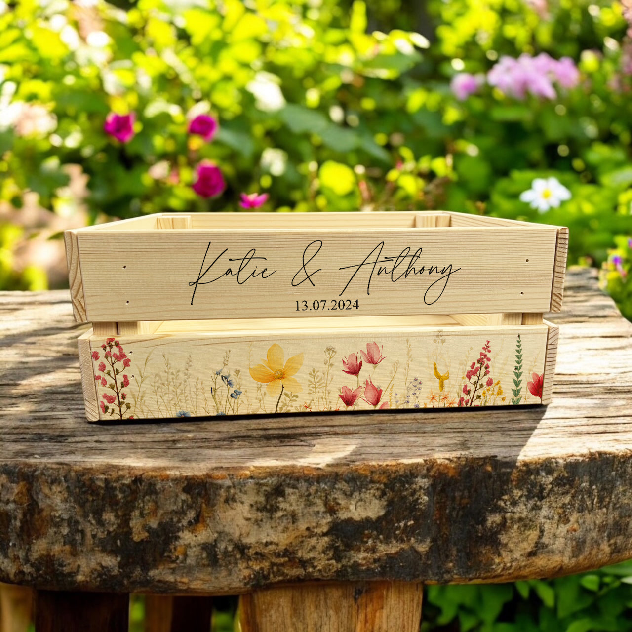 Personalised Wedding Crate, Wooden Wildflower Crate, Wedding Hamper Decor