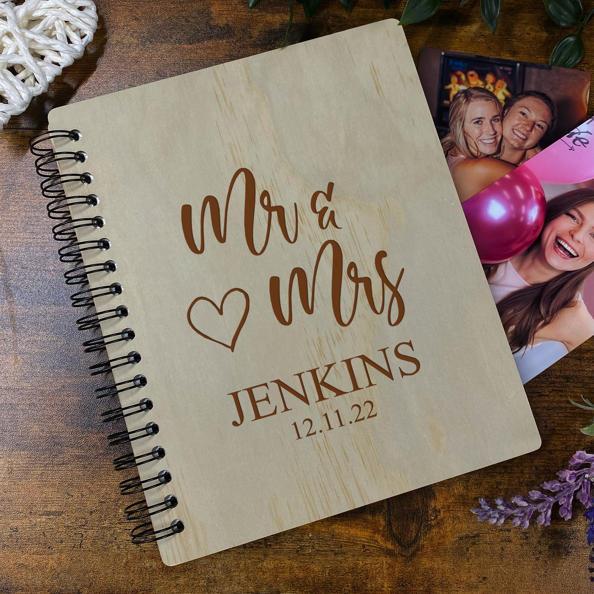 Personalised Large Engraved Wooden Wedding Photo Album Gift With Heart
