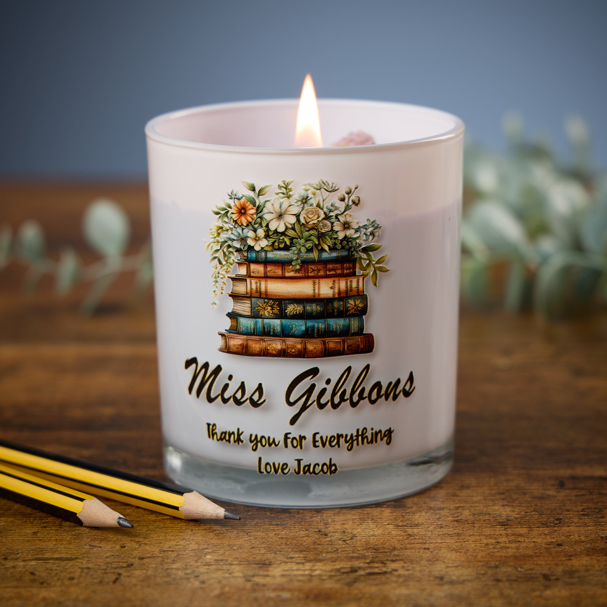 Beautiful Embellished Teacher Candle Jar Gift With Floral Books