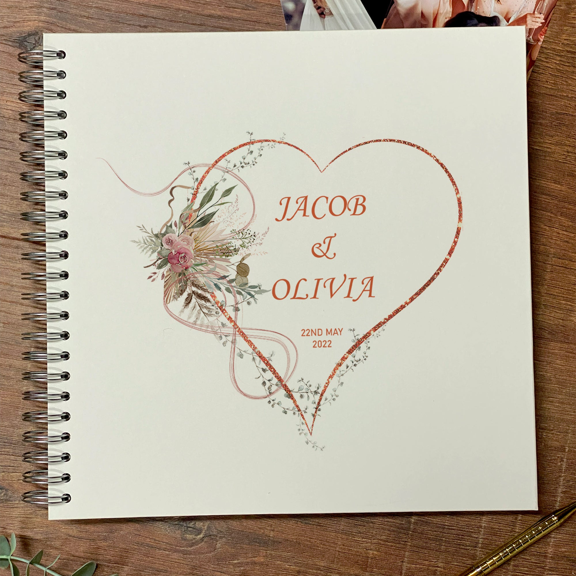 Large Wedding Photo Album Scrapbook Guest Book Boxed Rose Gold Floral Heart