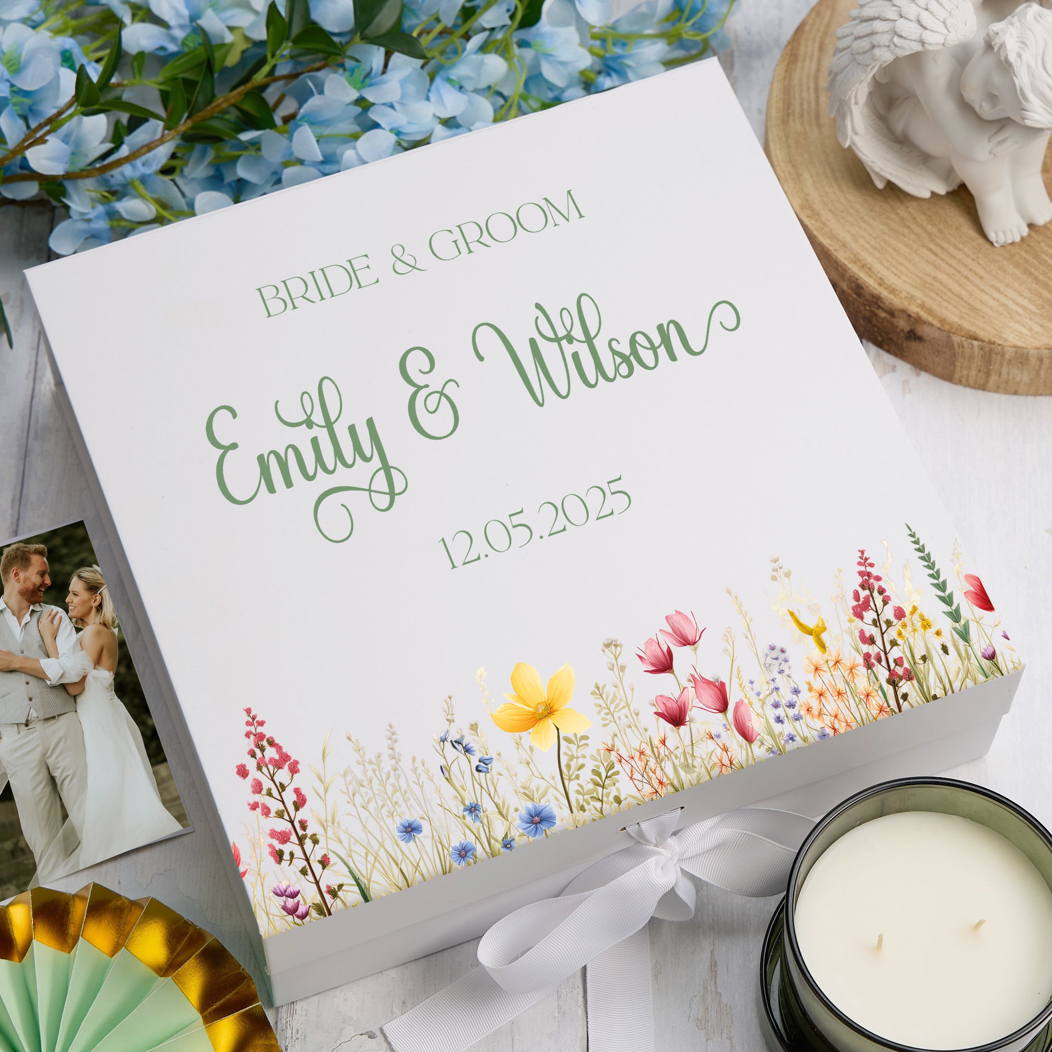 This beautiful treasure is the perfect way to honour your special day and cherish the memories for years to come. Enhance the box with your own personalisation and make it a unique couple's gift. Preserve the memories of your wedding day in a timeless and personalised keepsake box. This special gift is the ideal way to remember your special day. With the option to add your own personal touch to the design, you can create a truly one-of-a-kind present for the happy couple.