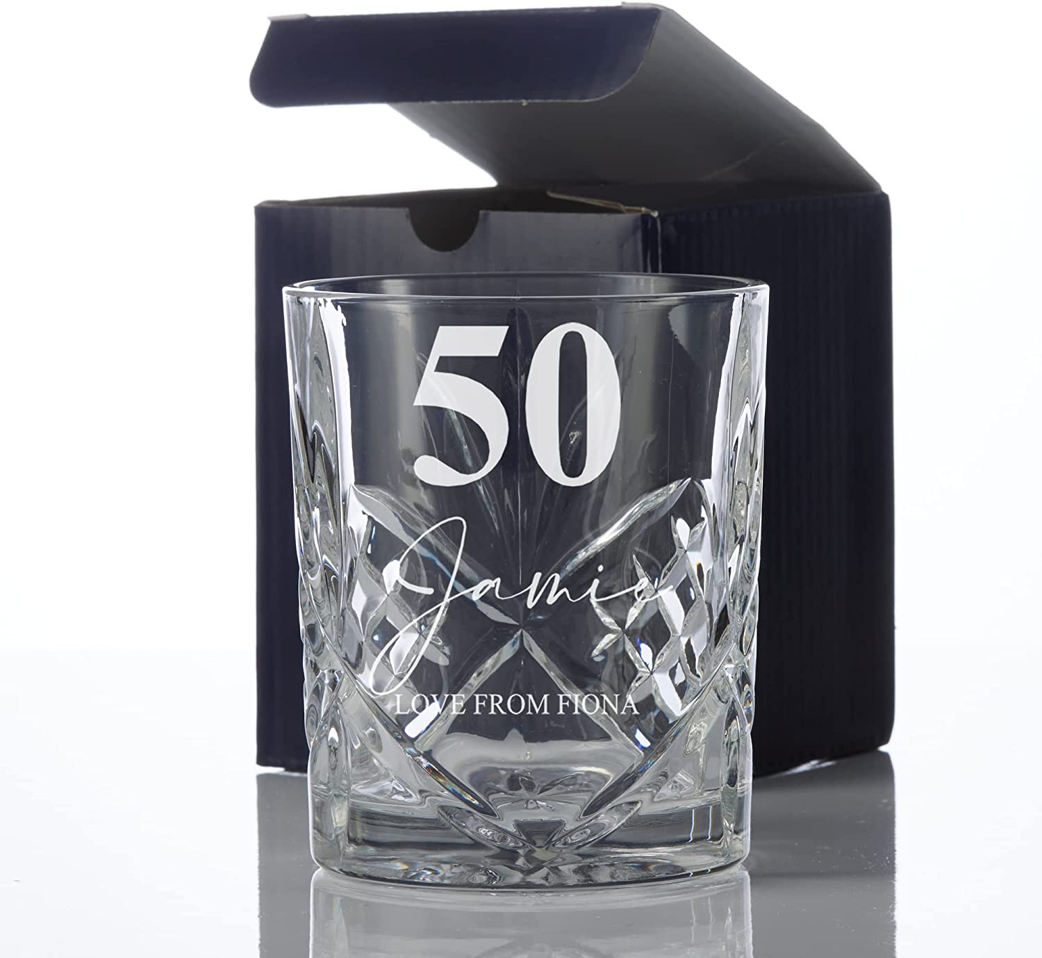 This glass holds up to 330ml/11.50oz, and measures 93mm high x 84mm wide. This would make an ideal classy gift. Marked with our laser engraving system, your personalised message will be permanently inscribed on the glass, making a lasting, sentimental gift that will be treasured forever. Your glass will arrive in stunning gift box, ready to give straight to the recipient. We recommend washing your glass as soon as you receive it. This glass is dishwasher safe, and as the engraving is permanent, you won't have to worry about washing your personalised message off.