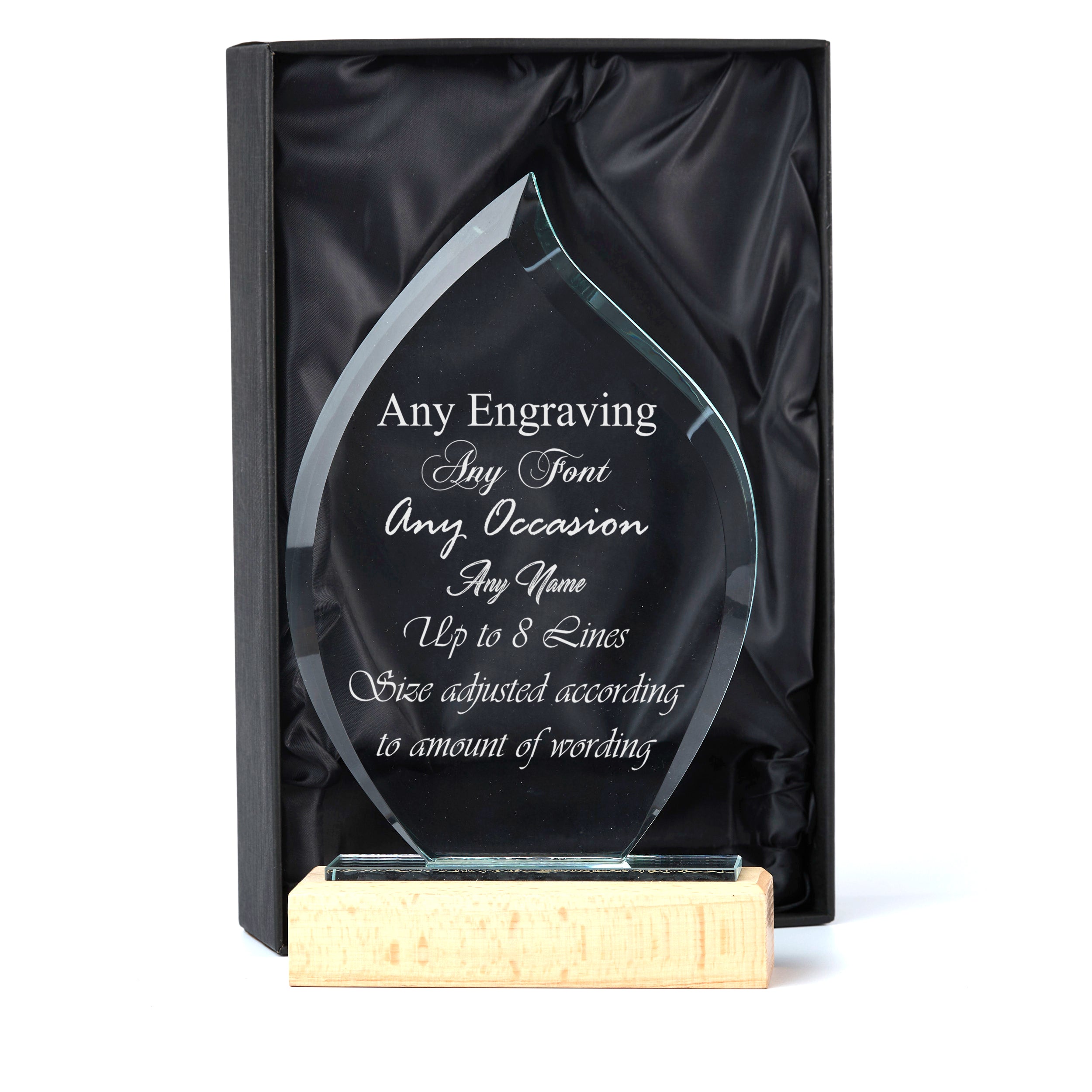 Large 20cm Jade Glass Personalised Tear Drop Trophy Any Engraving