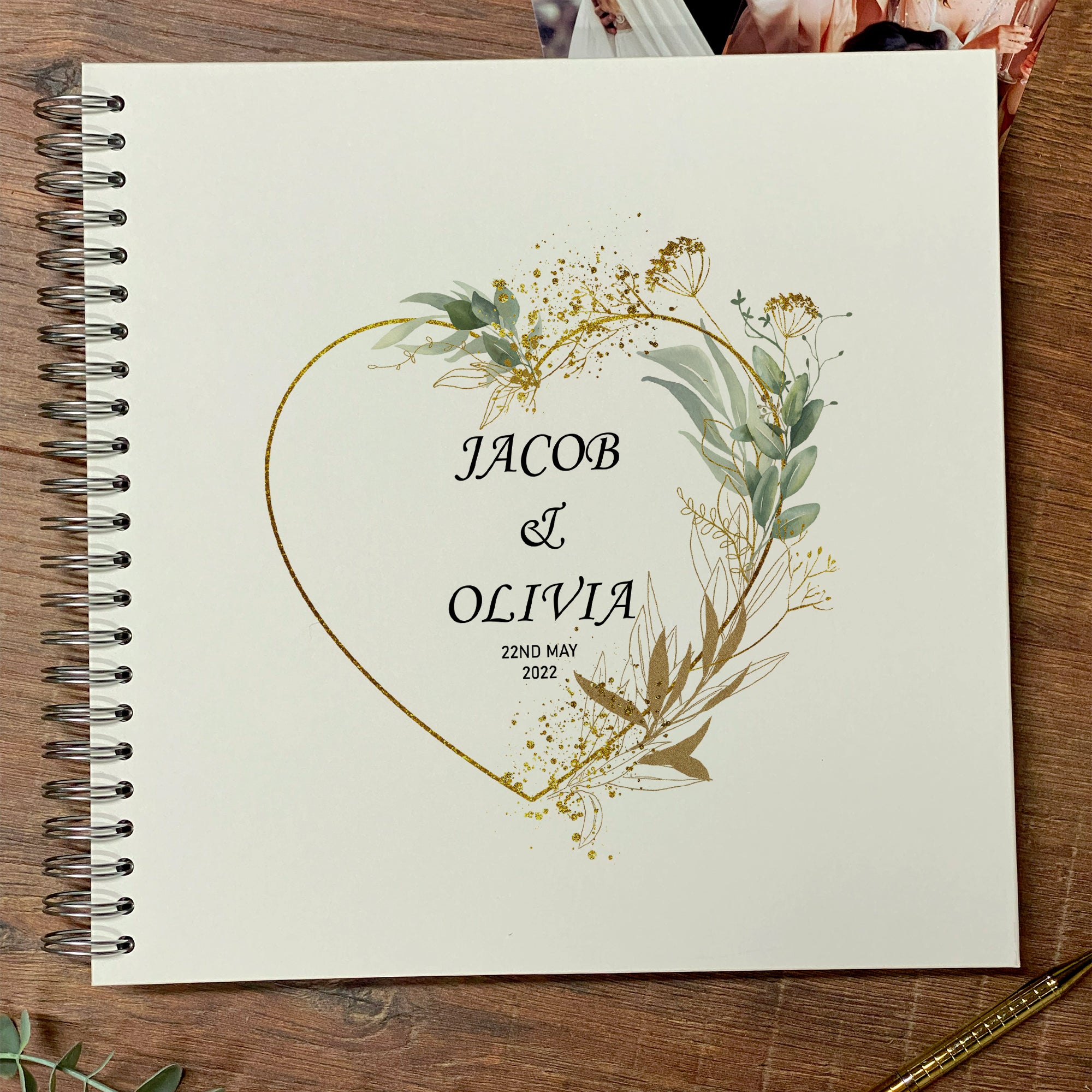 Large Wedding Photo Album Scrapbook Guest Book Boxed Gold Green Leaf Heart
