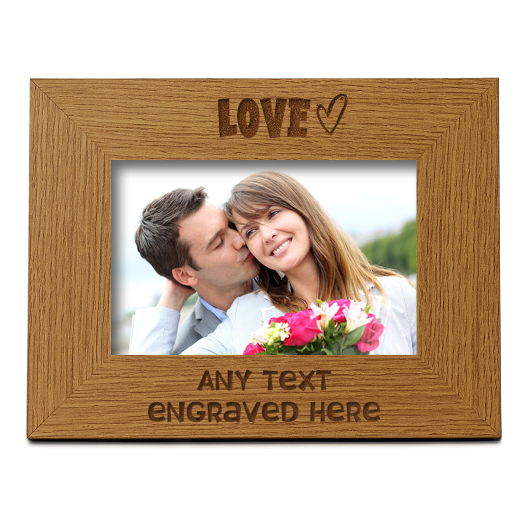 A lovely wooden frame to display that all important or memorable photo .The frame has a oak wood finish with and comes with "Love" on top and a heart design to the side