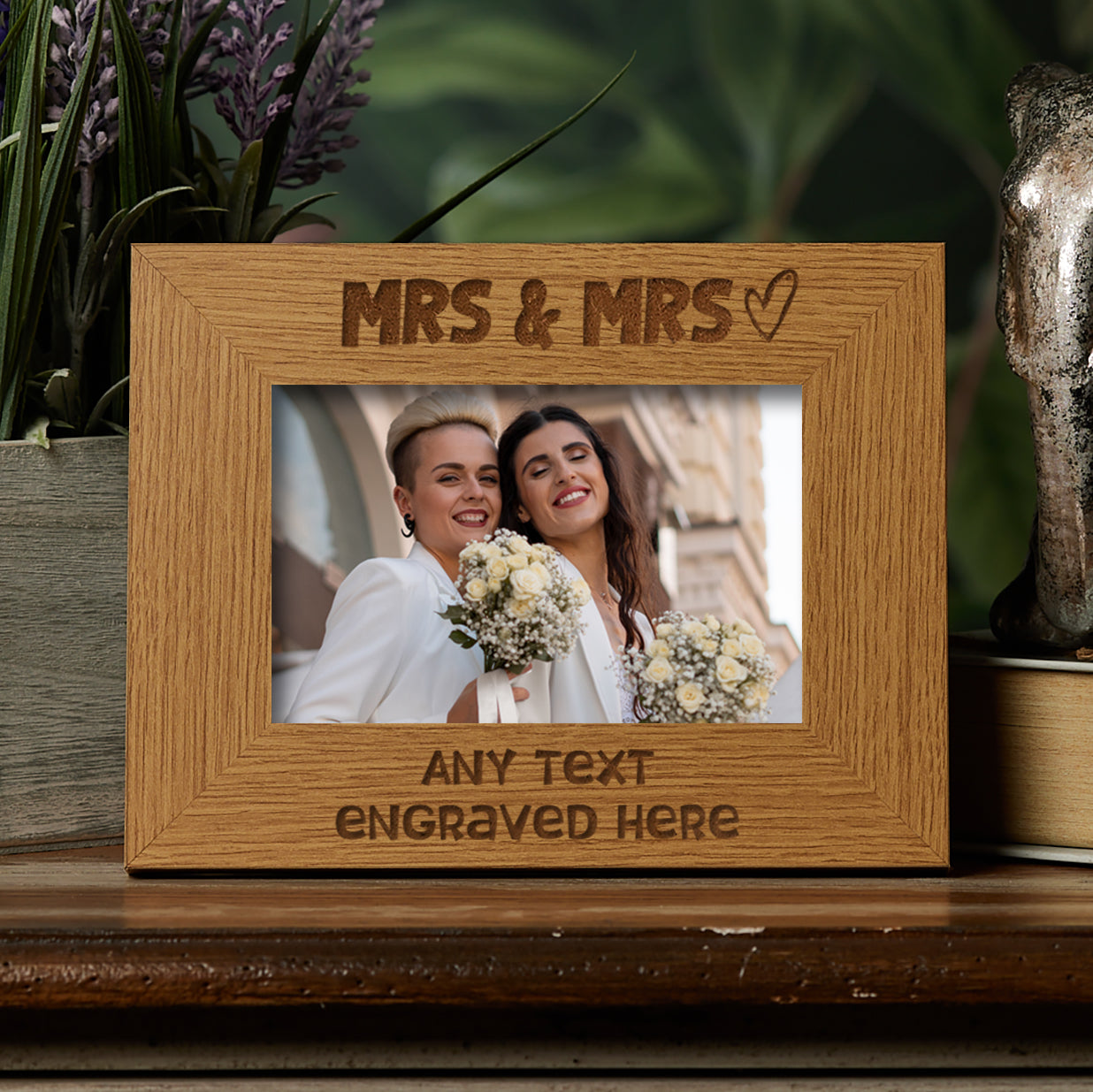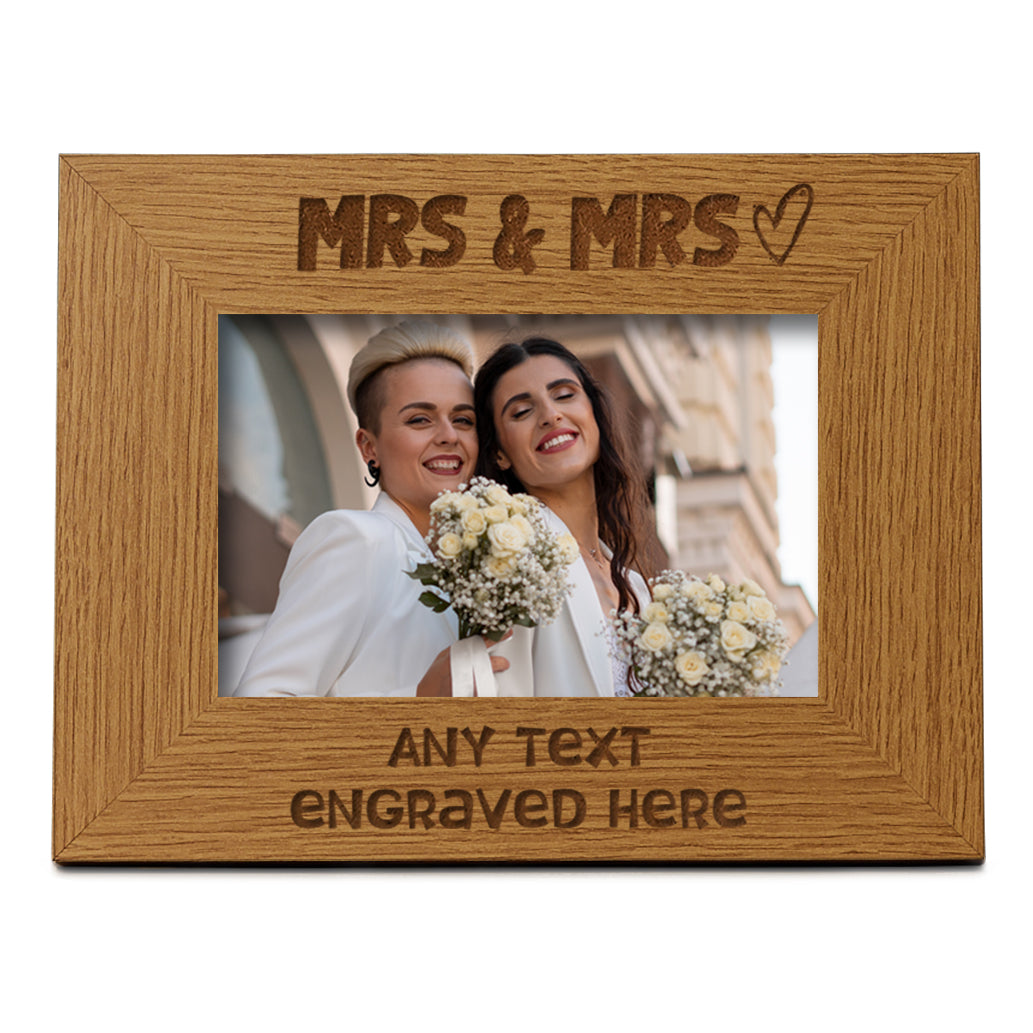 Oak Personalised Mrs and Mrs Gay Wedding Picture Photo Frame Heart Gift