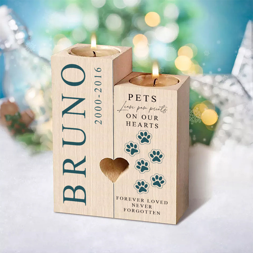 Personalised Pets Leave Paw Prints Dog Memorial Tea Light Candle Holder