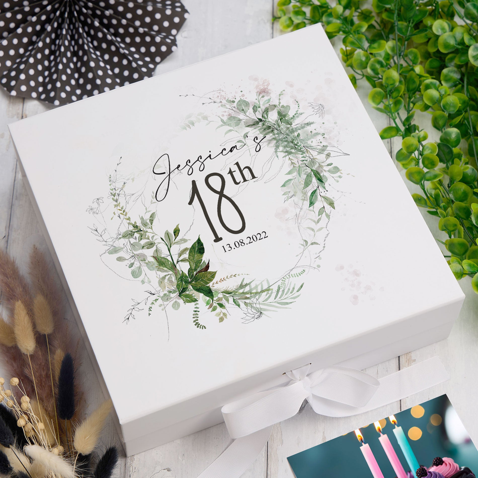 Personalised 18th Birthday Keepsake Box Gift With Botanical Design