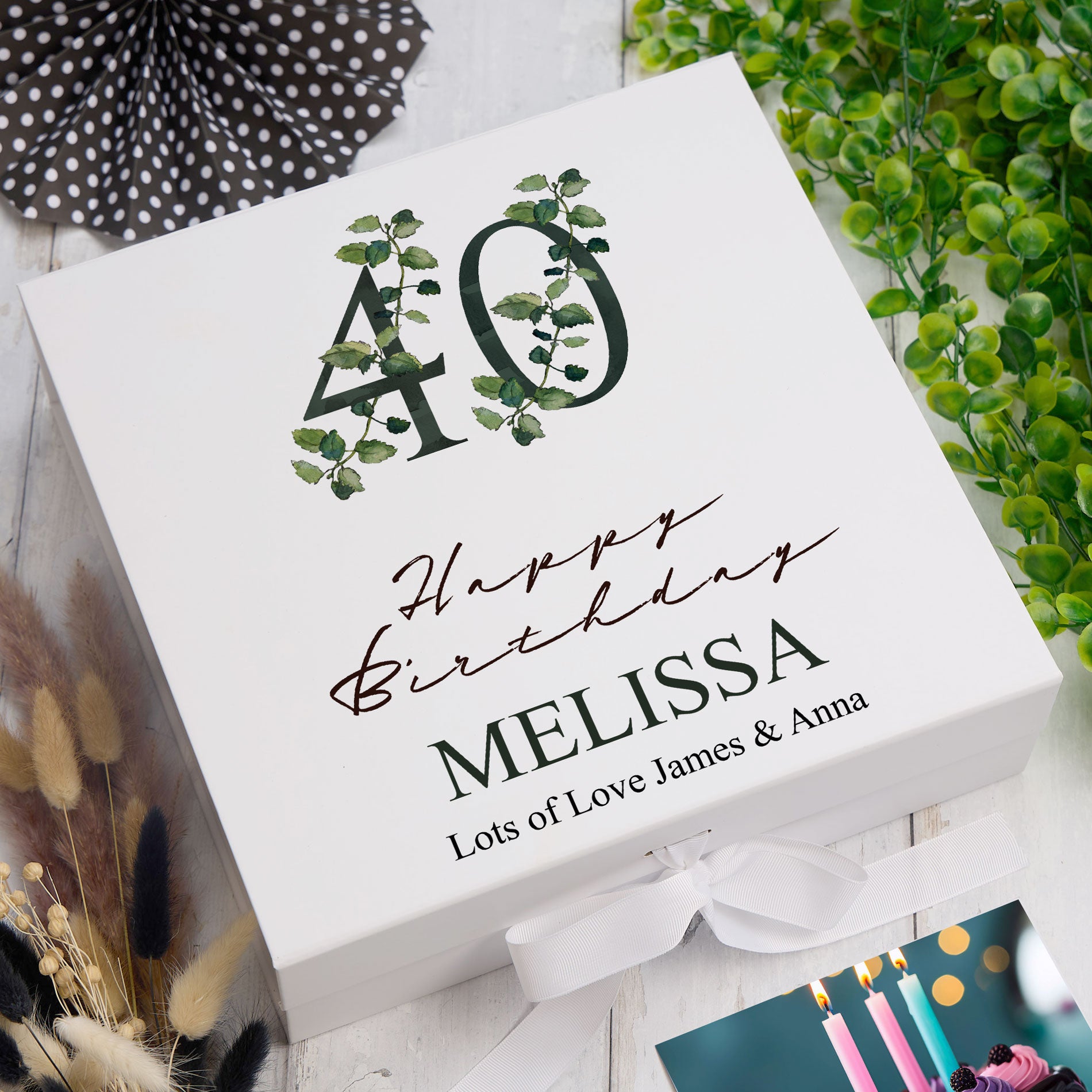 Make your gift extra special with a personalised 40th birthday keepsake box featuring a stylish green leaf...