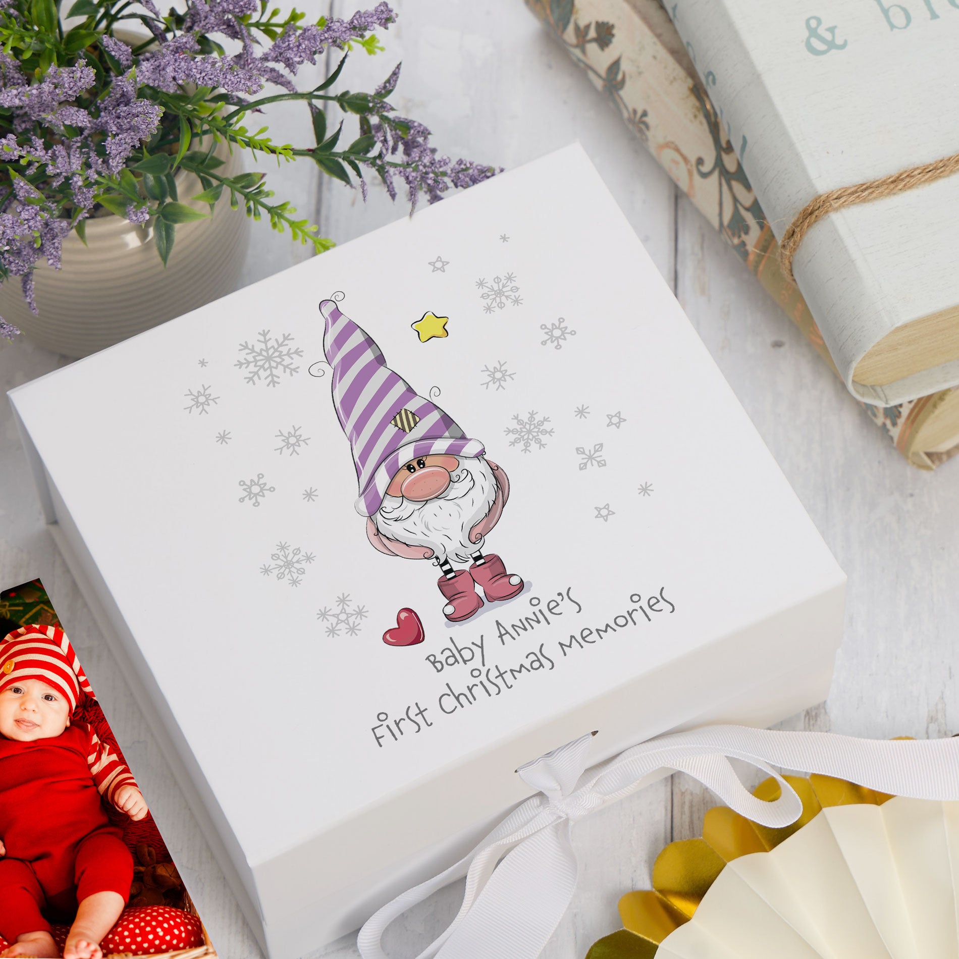 The personalised print on this luxury box is raised slightly to create a stunning embossed-style feature. The box itself is sturdy and durable - made from a luxurious 1200gsm white matt laminated rigid board. Available in two sizes and used as a gift box, as a memory box or as part of a hamper. Medium 17cm x 17cm x 8cm Large 30cm x 30cm x 9cm It can be used as a gift box, as a memory box or as part of a hamper.
