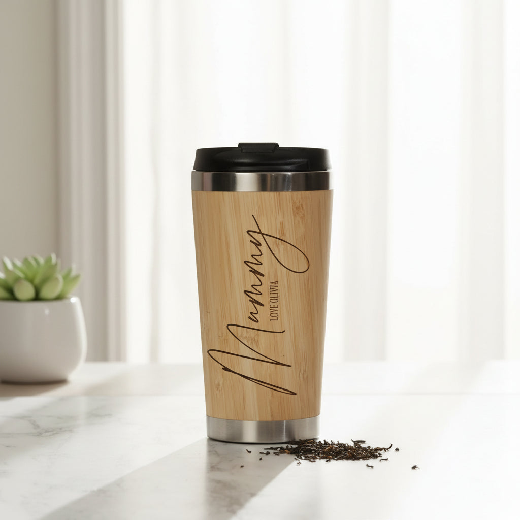 Personalised Engraved Bamboo Insulated Mummy Travel Mug Gift