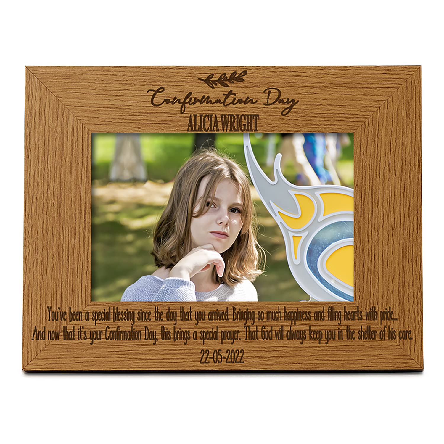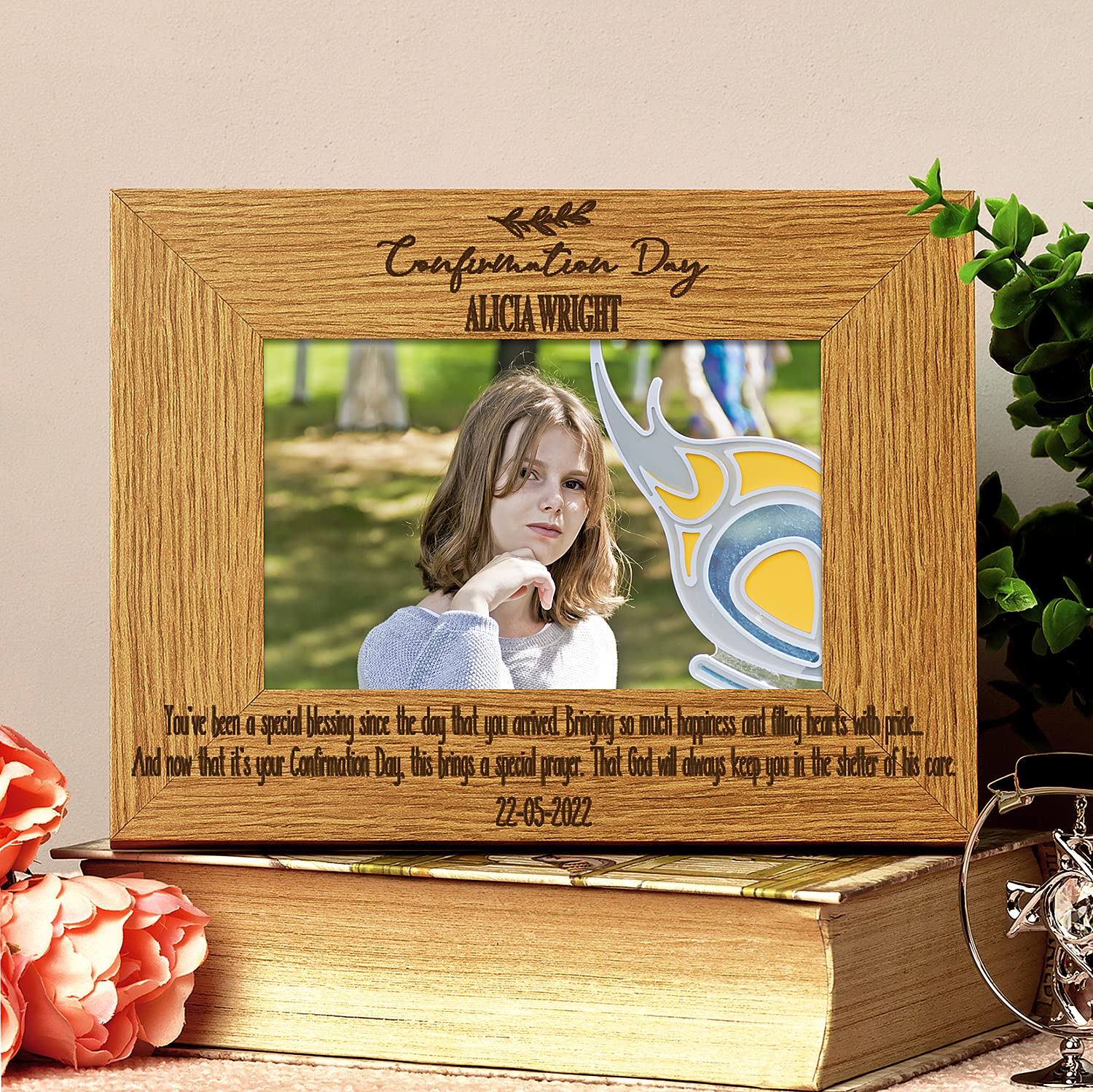 Custom Confirmation Day Picture Frame Beautifully showcase your cherished photos with this elegant wooden frame. The frame...