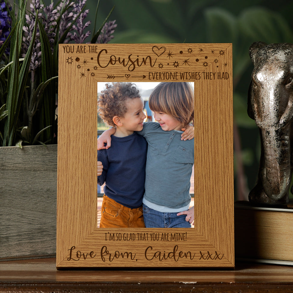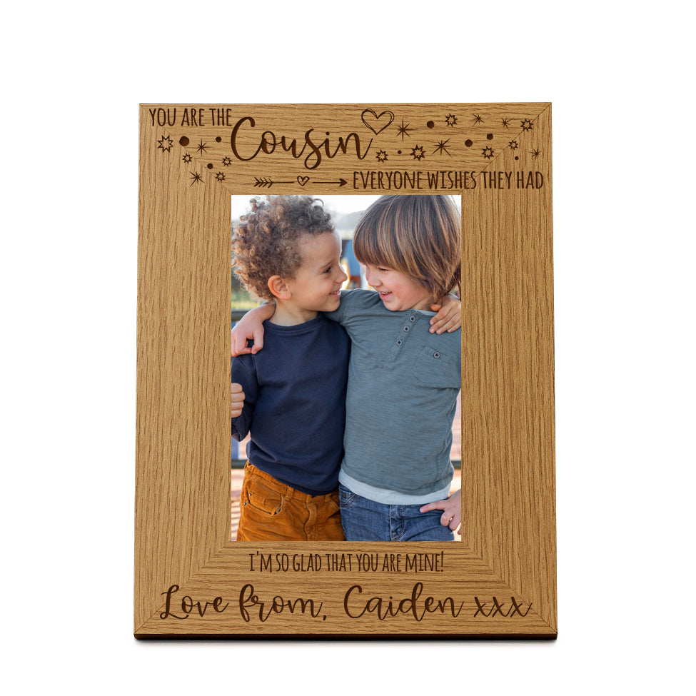 Custom Cousin Photo Frame Portrait: Display your favorite photo in this lovely wooden frame. The Personalised Cousin...