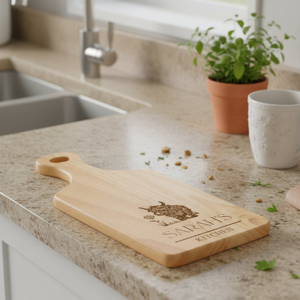 Add a personal touch to your kitchen with our Engraved Wooden Serving Board! Crafted from smooth, high-quality wood, this versatile board can be used for chopping, serving, or as a decorative piece. Custom engraved with your chosen name, message, or design, it makes a thoughtful and unique gift for housewarmings, weddings, anniversaries, or for anyone who loves to cook. Perfect for food prep, cheese boards, or serving platters.