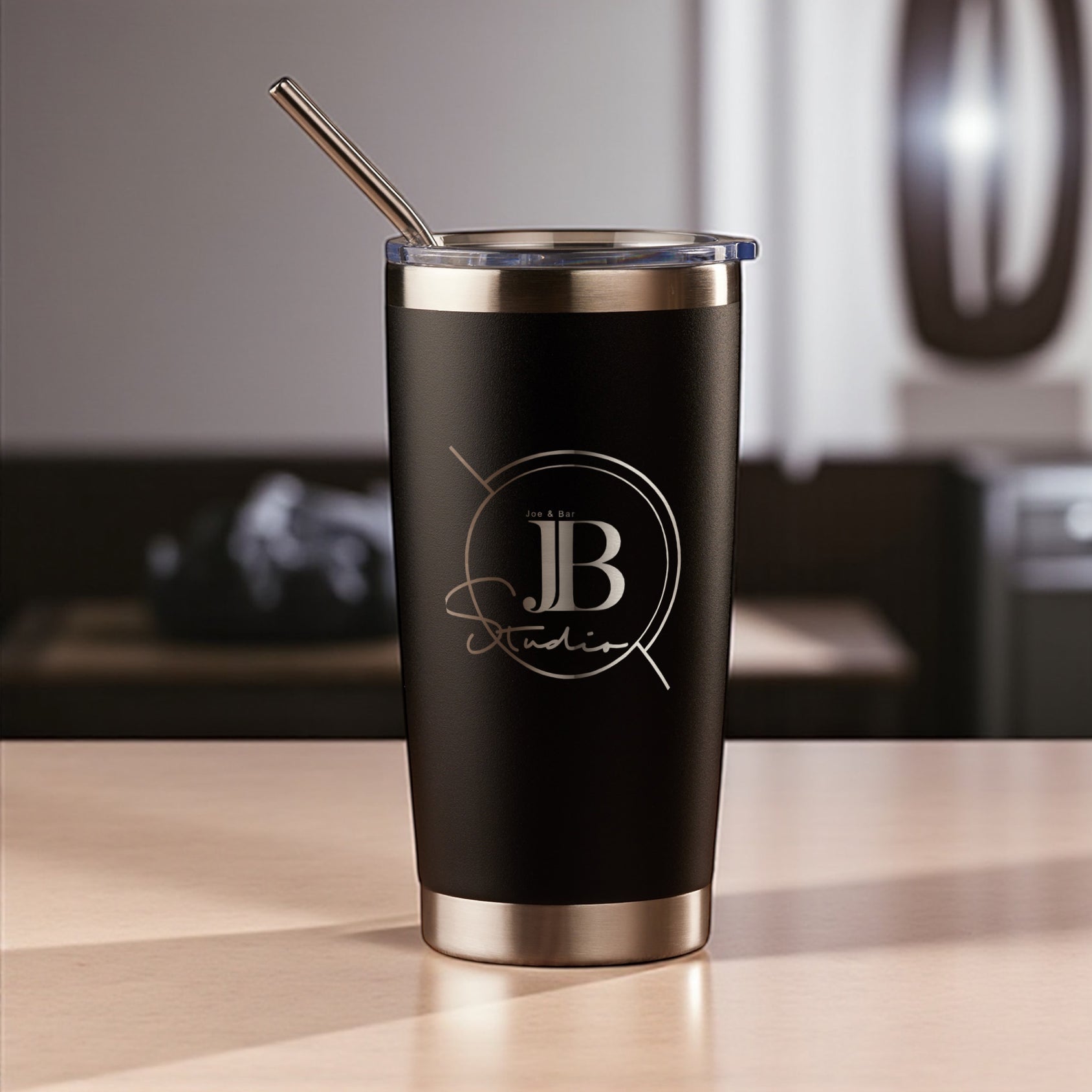Each customized tumbler with lid comes with a clear push-on lid and straw