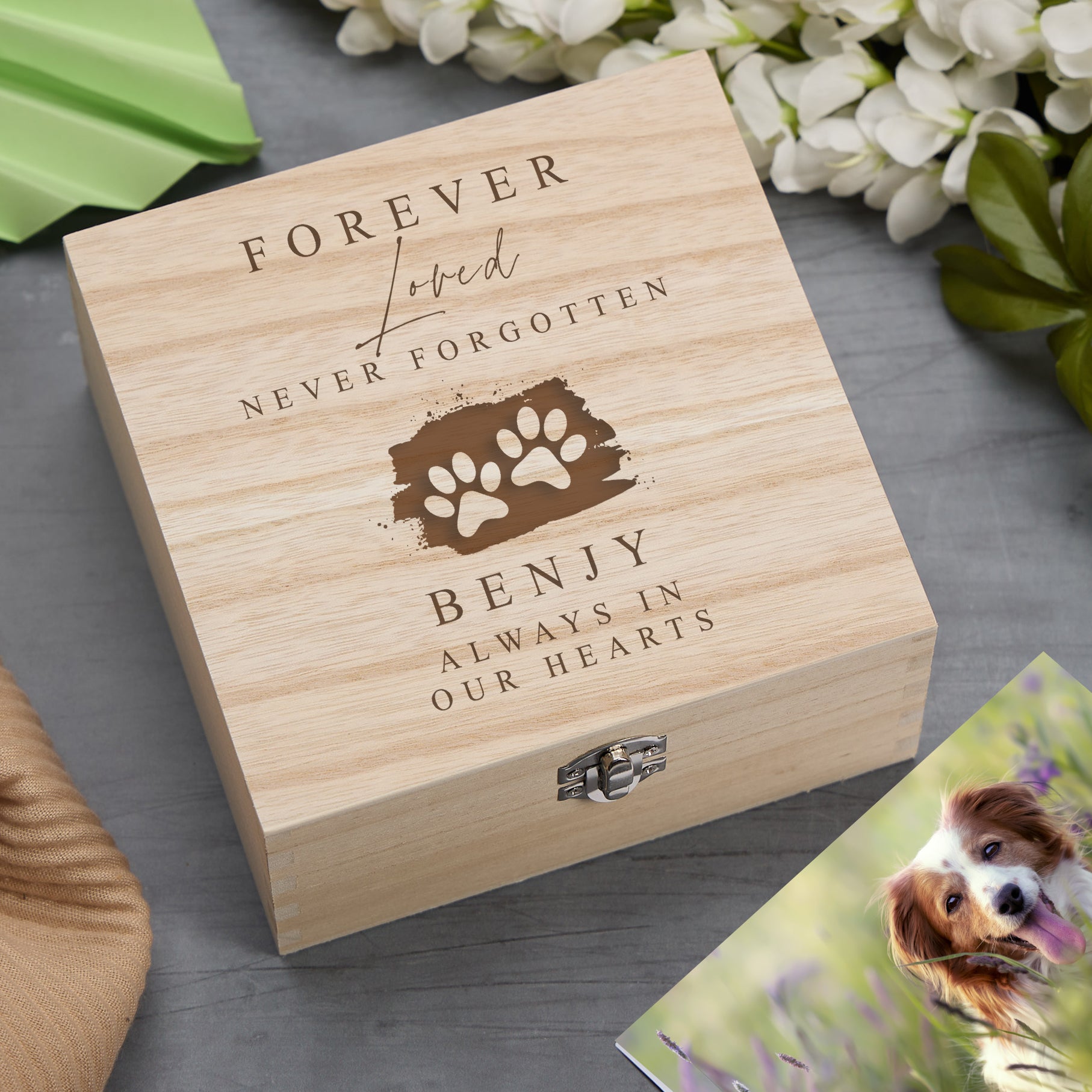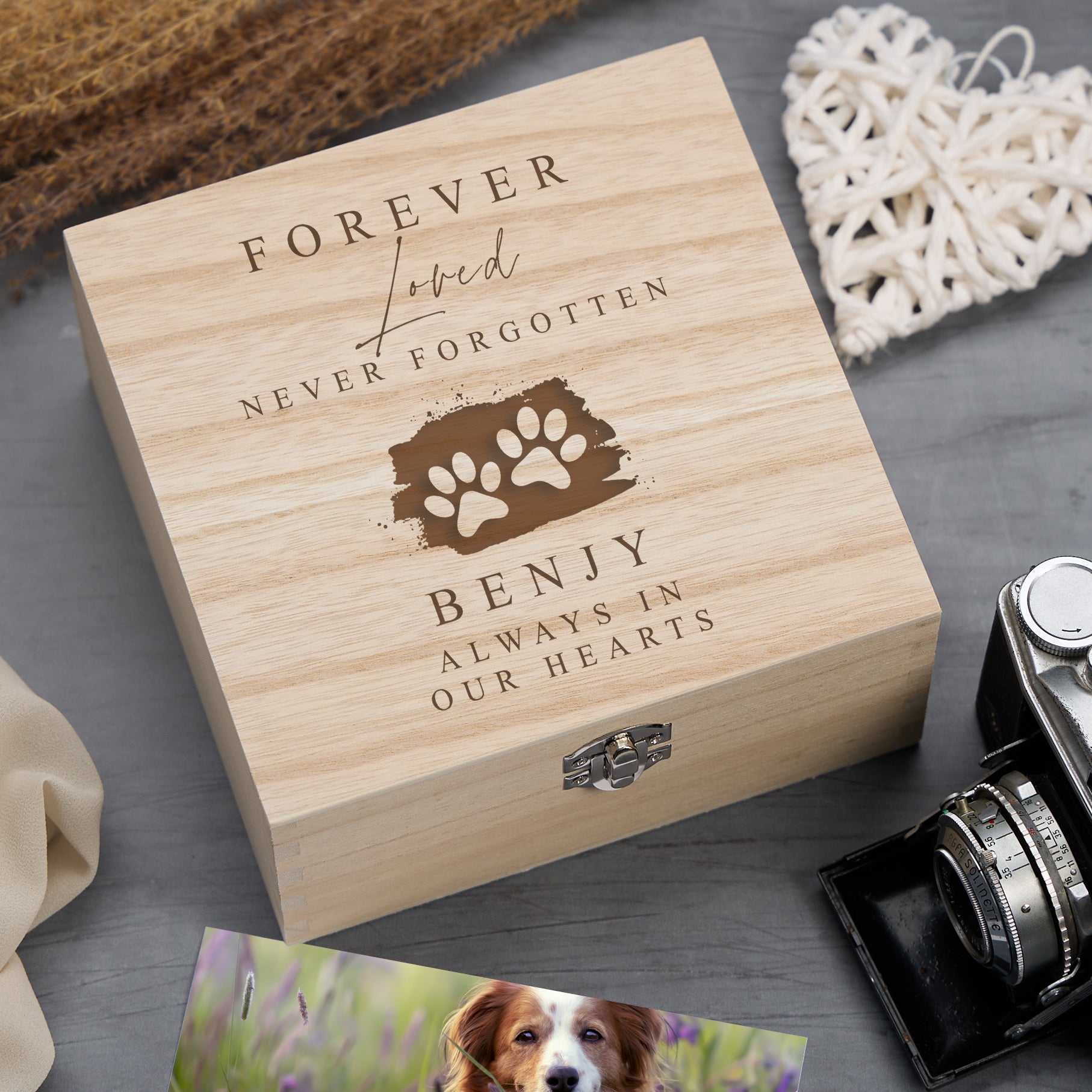 The Personalised pet Memory Keepsake Box Gift is the perfect way to treasure and remember one's special furry friend. Made with a beautiful sentiment, this keepsake box is a timeless and elegant piece that will display your cherished memories for years to come. With its personalised touch, it's a unique and thoughtful gift for any newlywed couple. Preserve your memories in style with this stunning keepsake box.