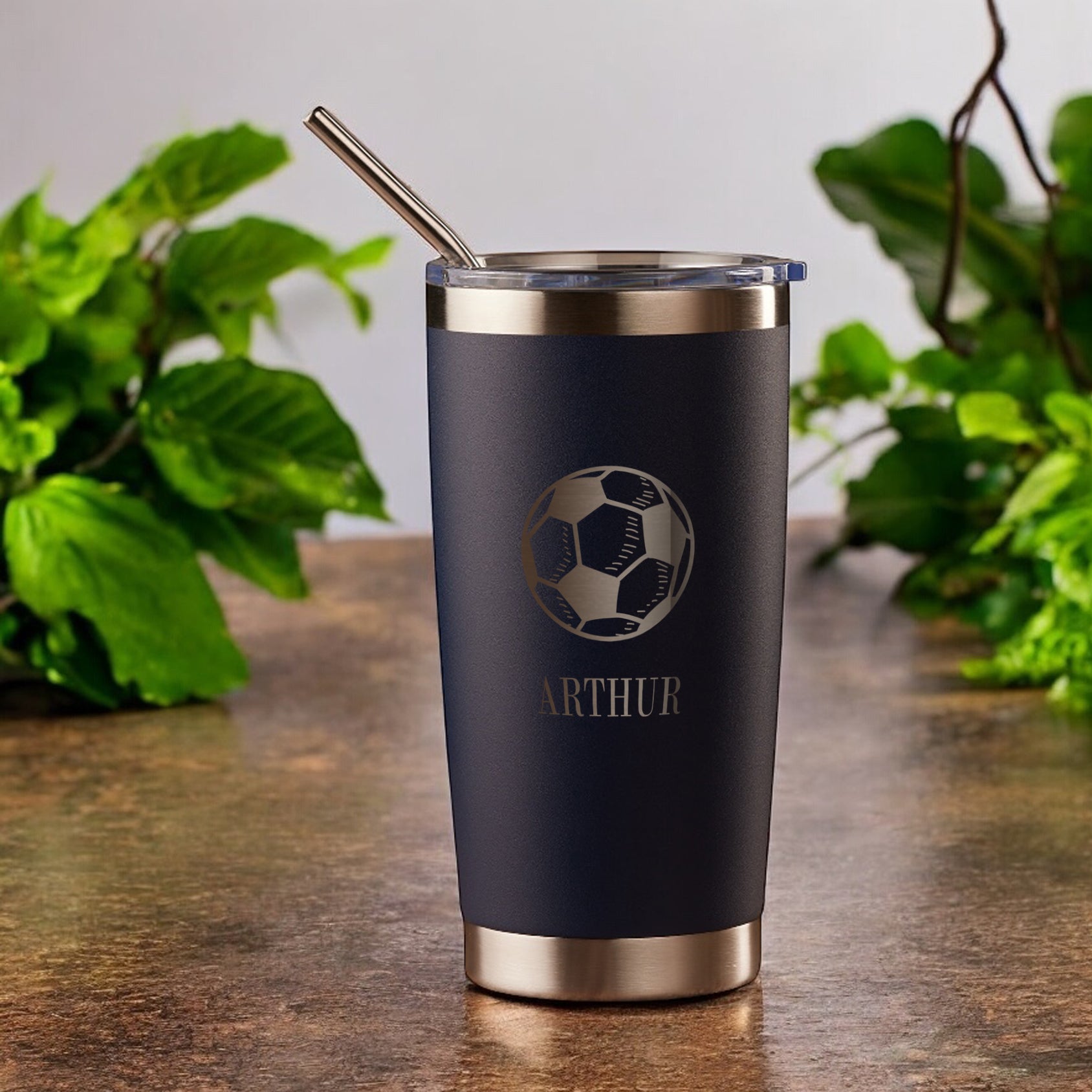 Each customized tumbler with lid comes with a clear push-on lid and straw