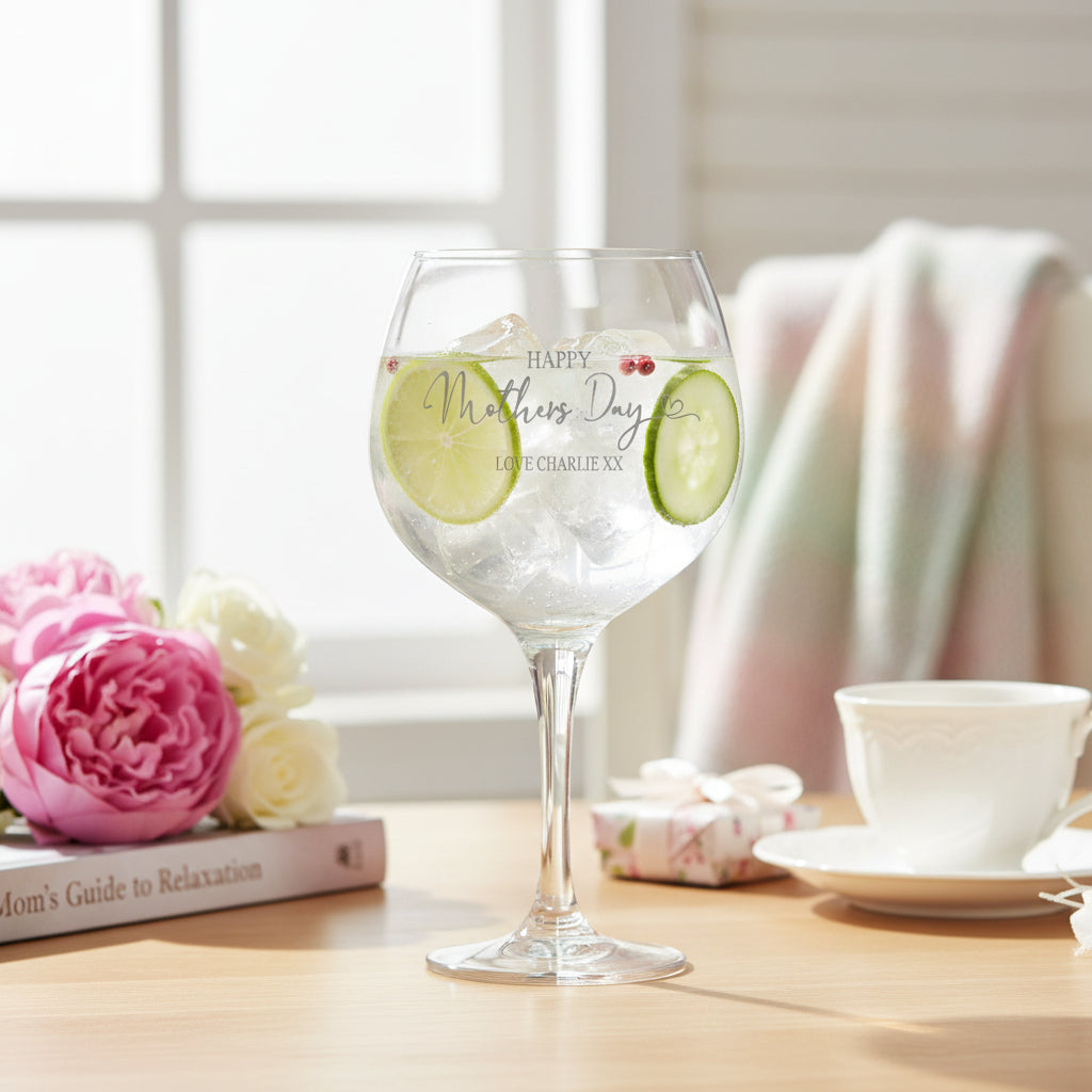 Honour your mother this Mother's Day with a personalised gin or cocktail glass that combines elegance with heartfelt sentiment. Standing 21cm tall with a generous 10cm width and depth, this premium glass provides a comfortable grip whilst maintaining a refined silhouette perfect for her favourite spirits. Each glass is expertly engraved with a custom "Happy Mother's Day" message, creating a bespoke keepsake she'll treasure long after the occasion. The permanent engraving ensures your tribute remains vibrant through regular use and washing, transforming an everyday drinking vessel into a meaningful memento. Presented in a sleek, minimalist gift box, this glass arrives ready to present without additional wrapping—ideal for those seeking a sophisticated yet personal gift. The thoughtful design makes it equally suited for gin enthusiasts, cocktail lovers, or anyone who appreciates quality drinkware with sentimental value. This is more than a functional piece; it's a lasting reminder of your appreciation, combining practical elegance with the emotional resonance of a truly personalised gift.