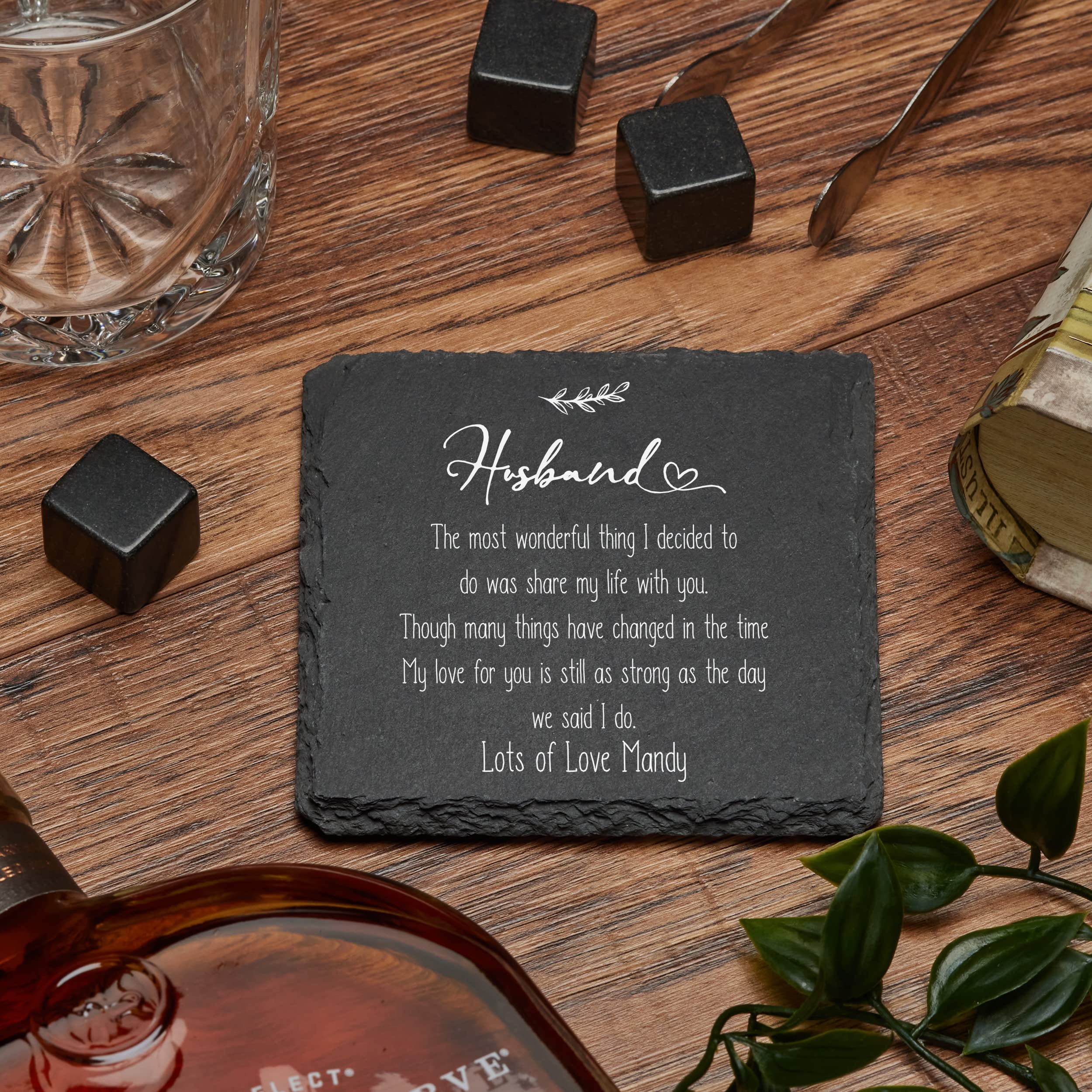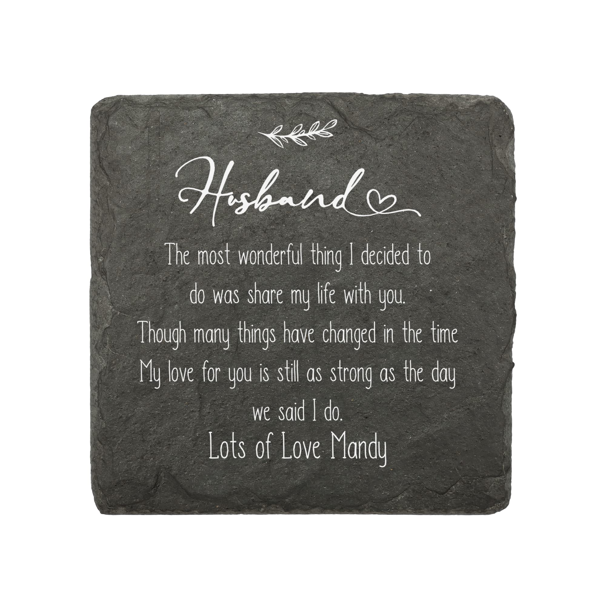 The slate measures 10cm and comes foam pads underneath to protect the furniture. As we only use the 100% natural raw slate and hand-cut it to shape, irregularities on the surface /sharp edges & corners and tiny chips off within the finished designs are to be expected.
