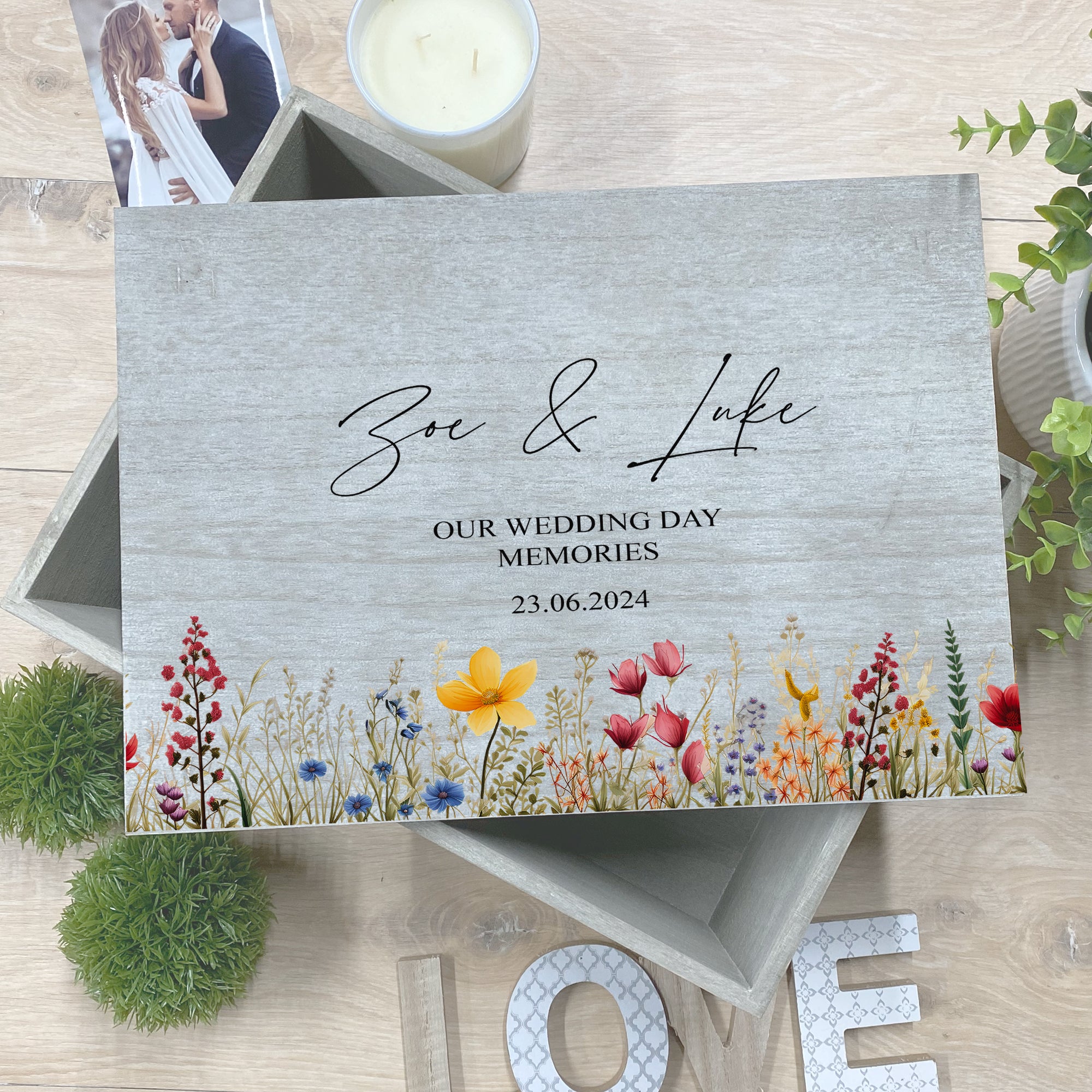 This Personalised Large Vintage Wedding Keepsake Box features a beautiful flower border, making it the perfect way...