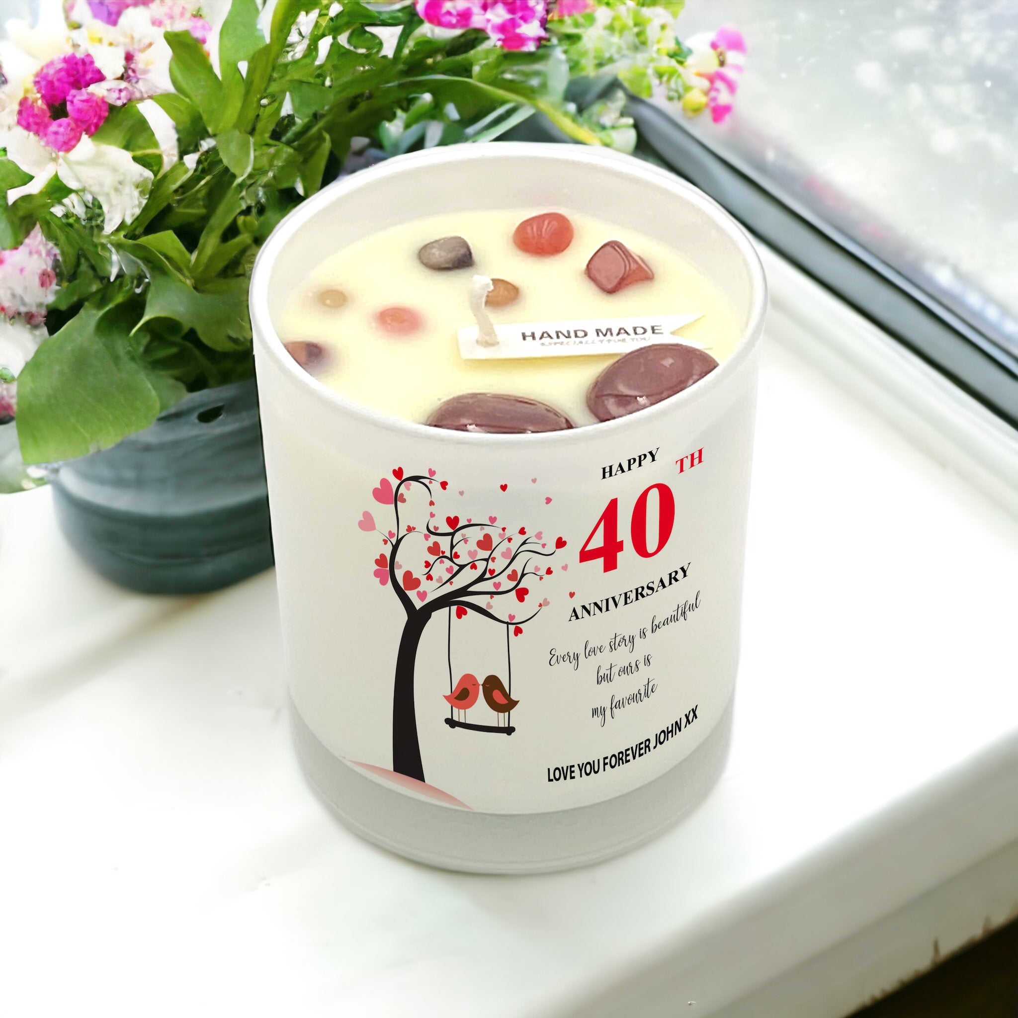 This candle is a luxurious and thoughtful way to commemorate a special occasion. It's handmade with meticulous attention to detail that lasts up to 80 hours. No detail is spared in celebrating the 40th anniversary.