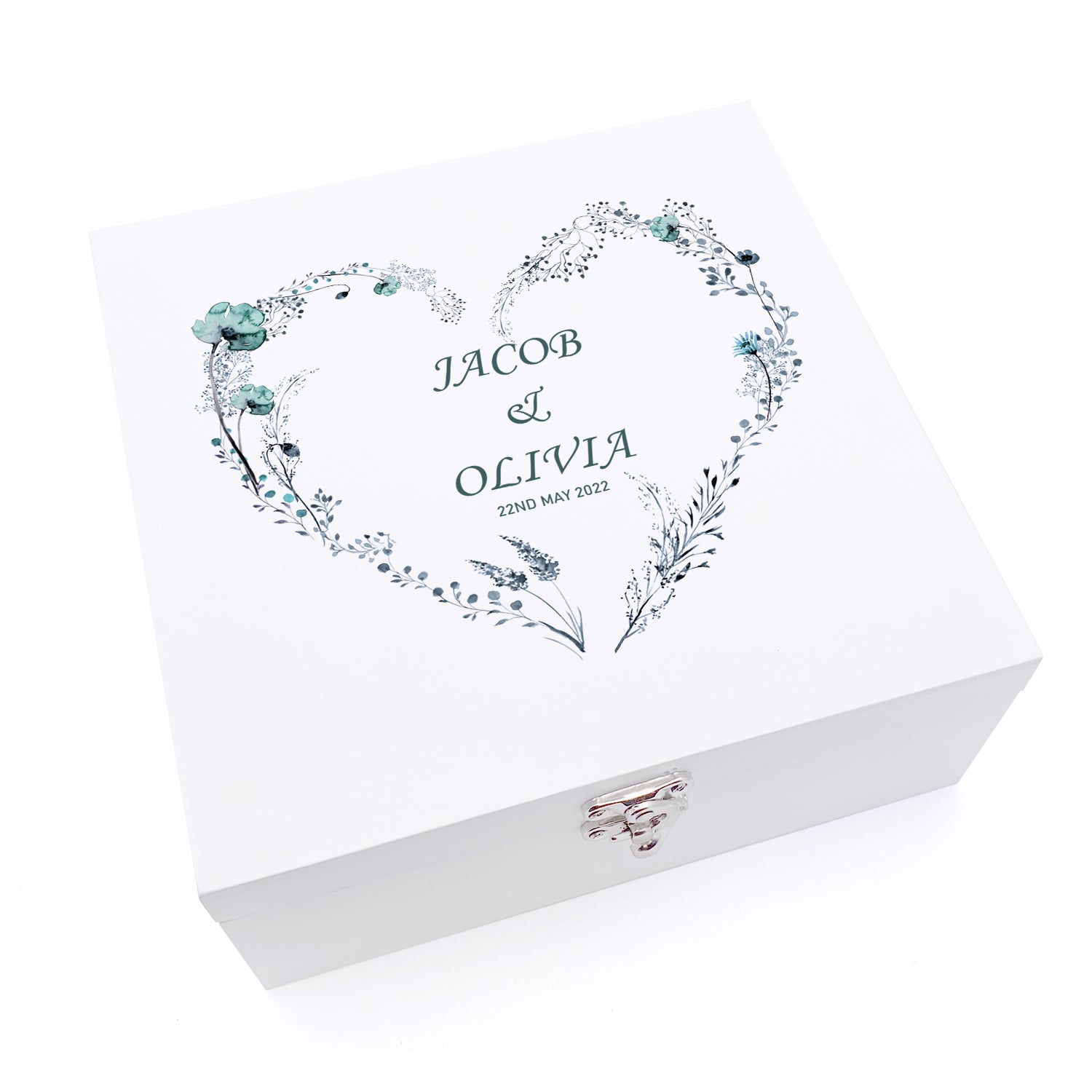 Personalised Luxury Wooden Wedding Box Keepsakes With Dusty Blue Heart
