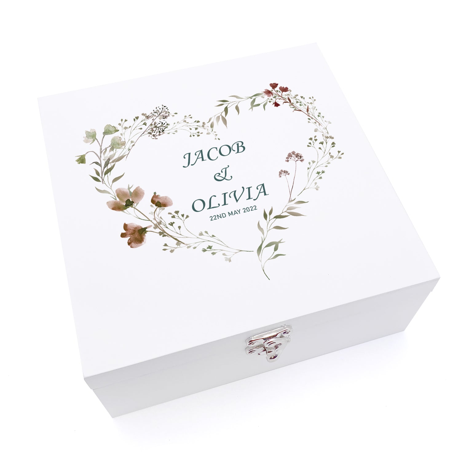 Personalised Luxury Wooden Wedding Box Keepsakes With Watercolour Floral Heart
