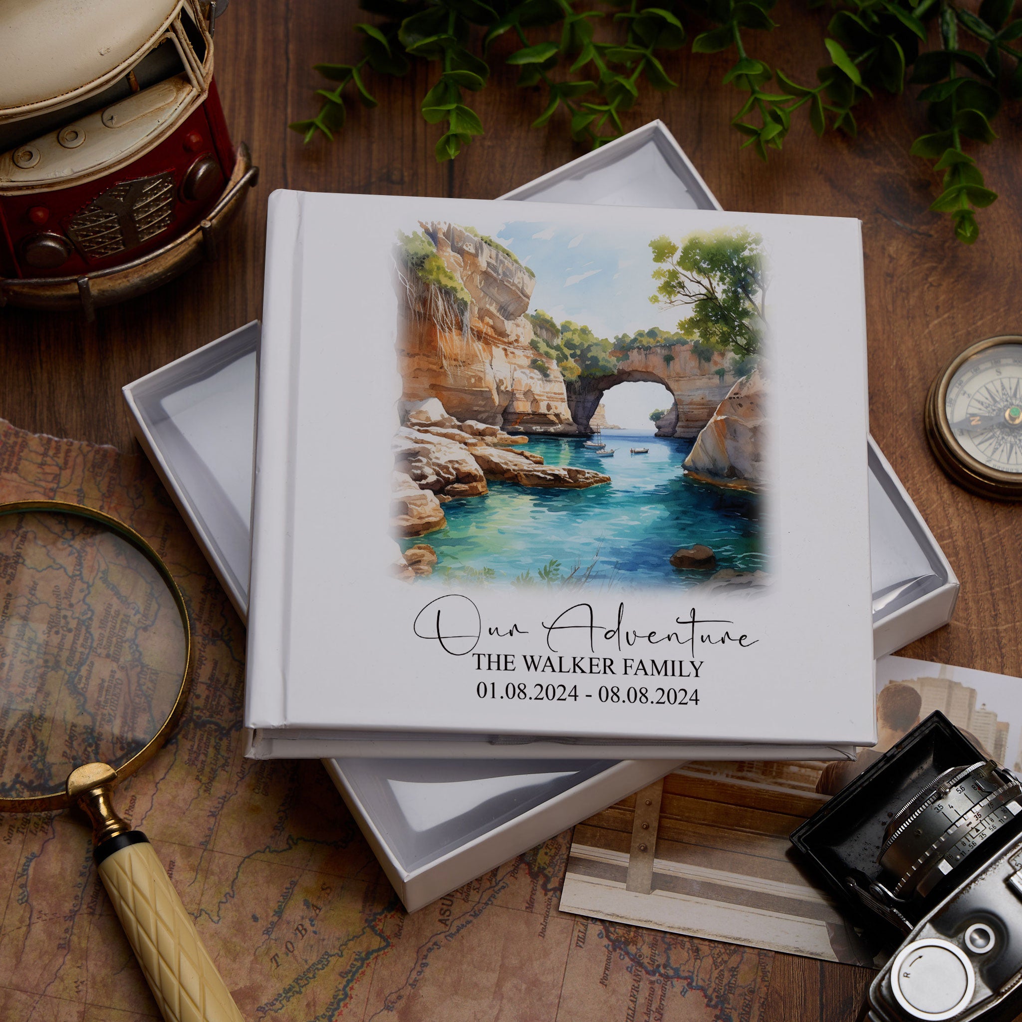 This photo album makes the perfect travel companion. Each album features a personalised cover and can hold up to 50 photos, sized 4" x 6", with room for writing next to each one. The album size is approximately 18.5cm x 19.5cm, and it comes neatly boxed for the ideal keepsake gift.